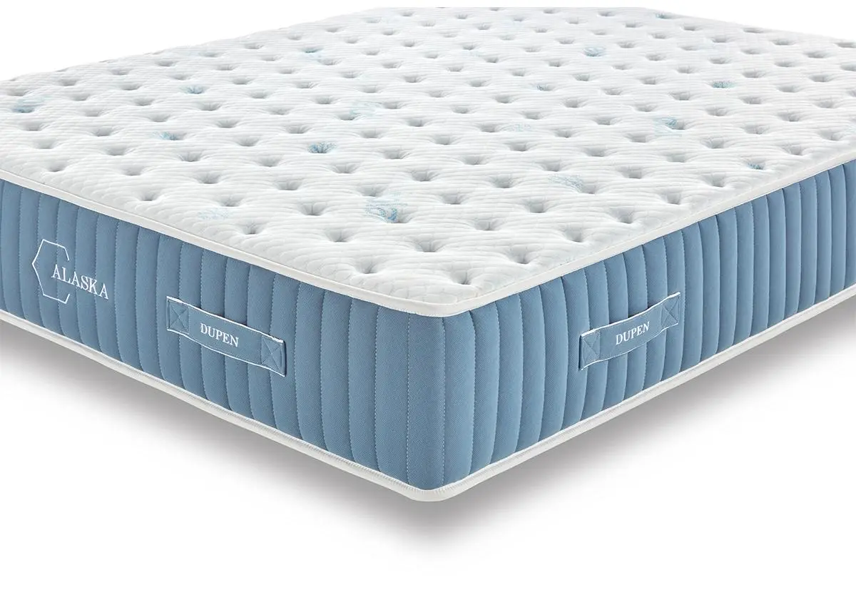 ALASKA es un colchón con el núcleo de HR de alta densidad, cómodo de usar durante los meses de verano gracias al tejido COOLFRESH, con efecto refrescante, que ayuda a regular la temperatura corporal.