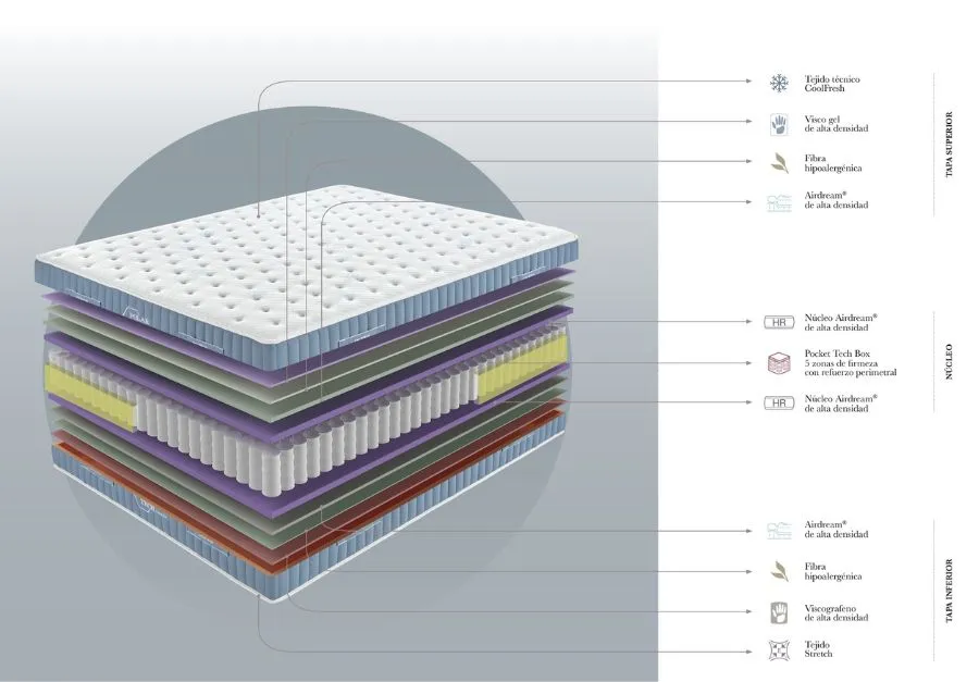 Colchón Polar Tech Tejido técnico COOLFRESH+ Viscogel