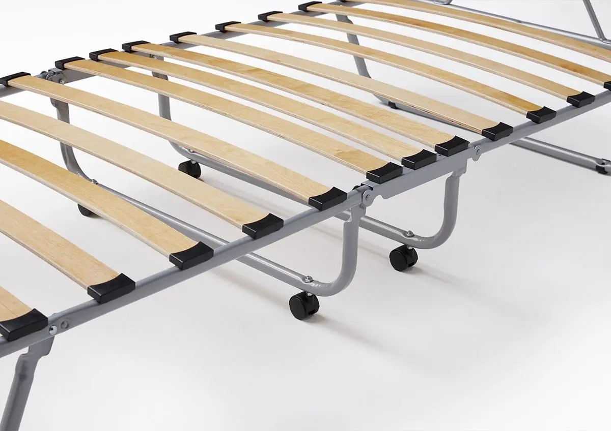 - Somier: Plegable con lamas de haya vaporizadas, sujetadas al bastidor mediante tacos antiruido.