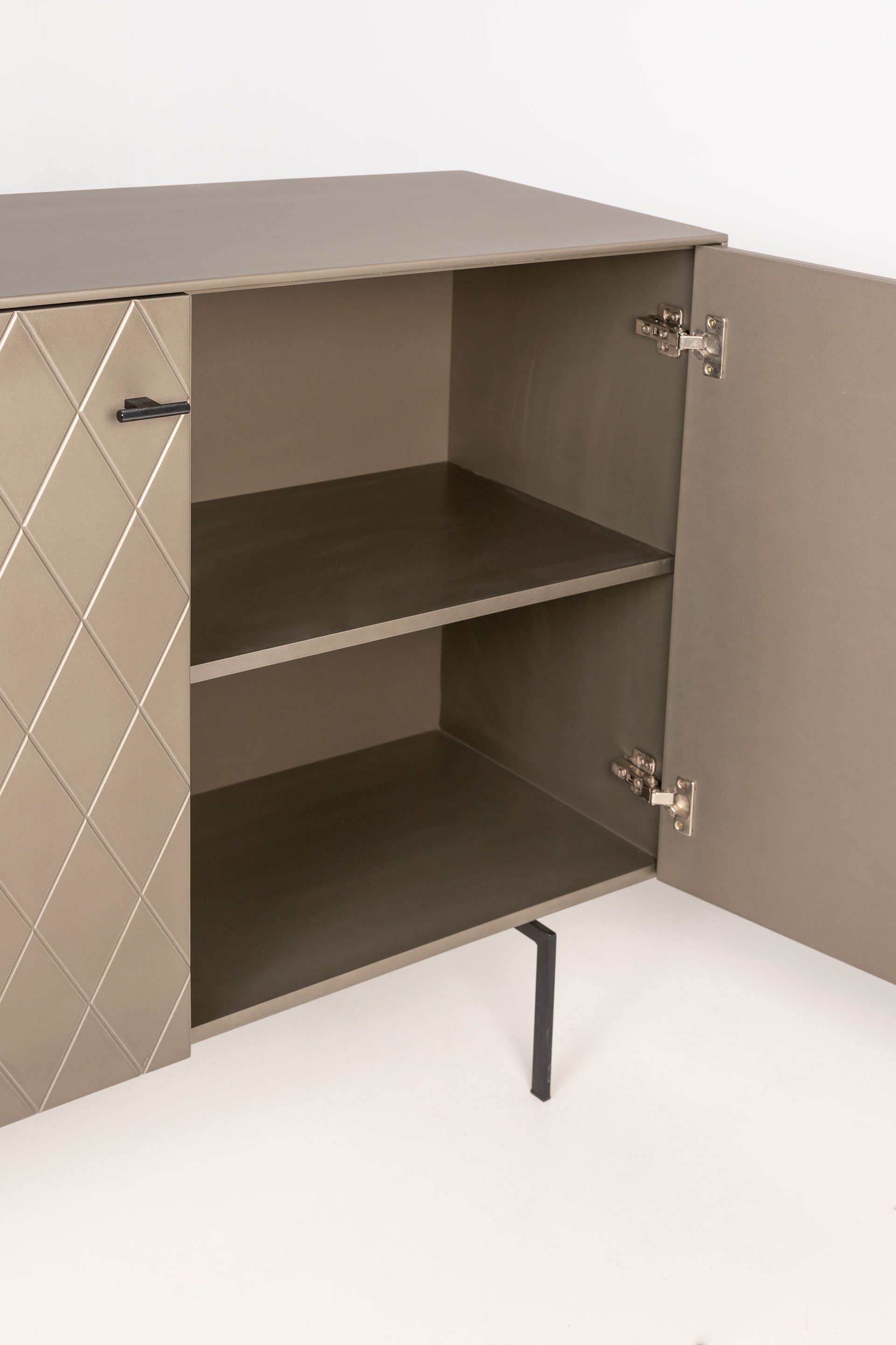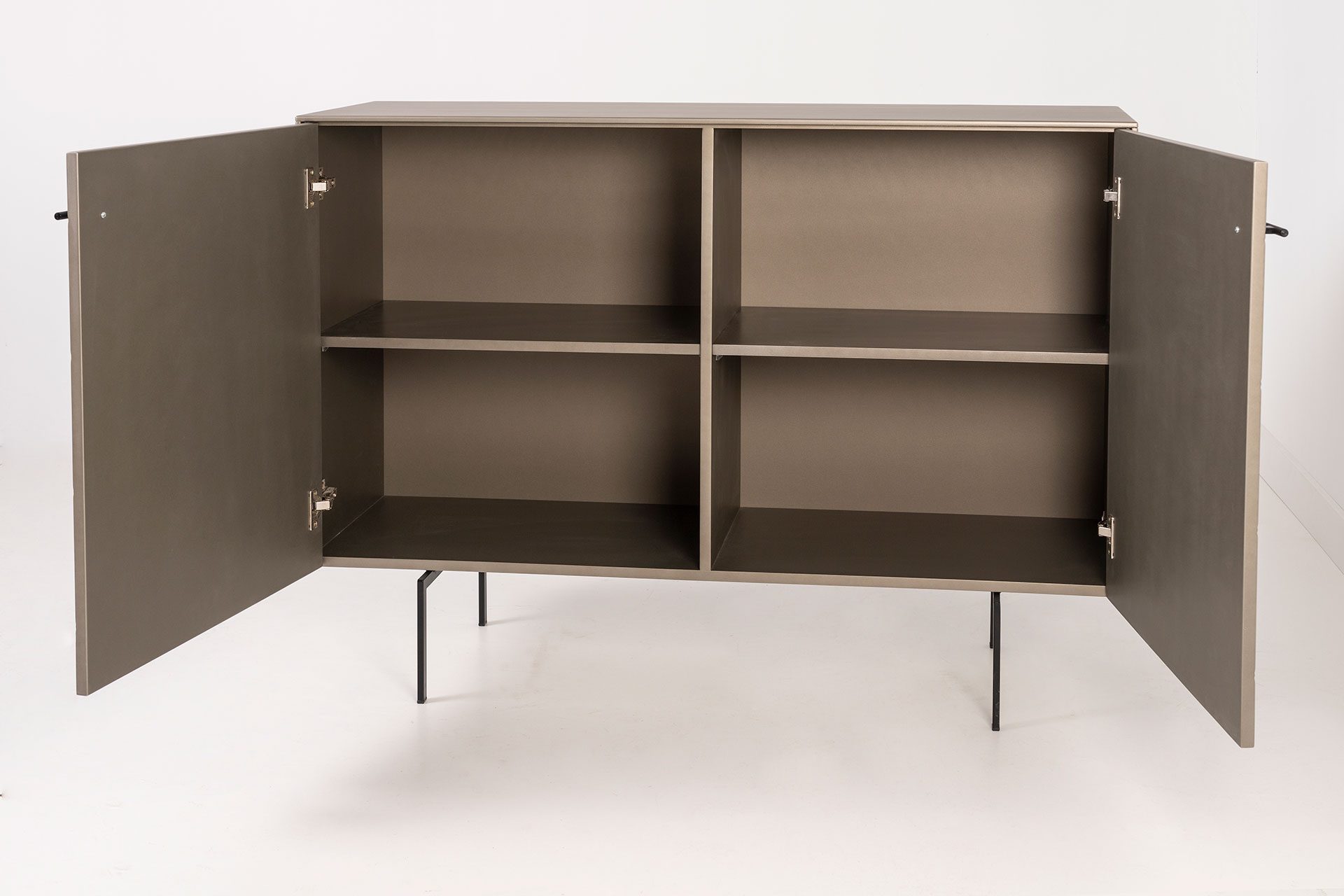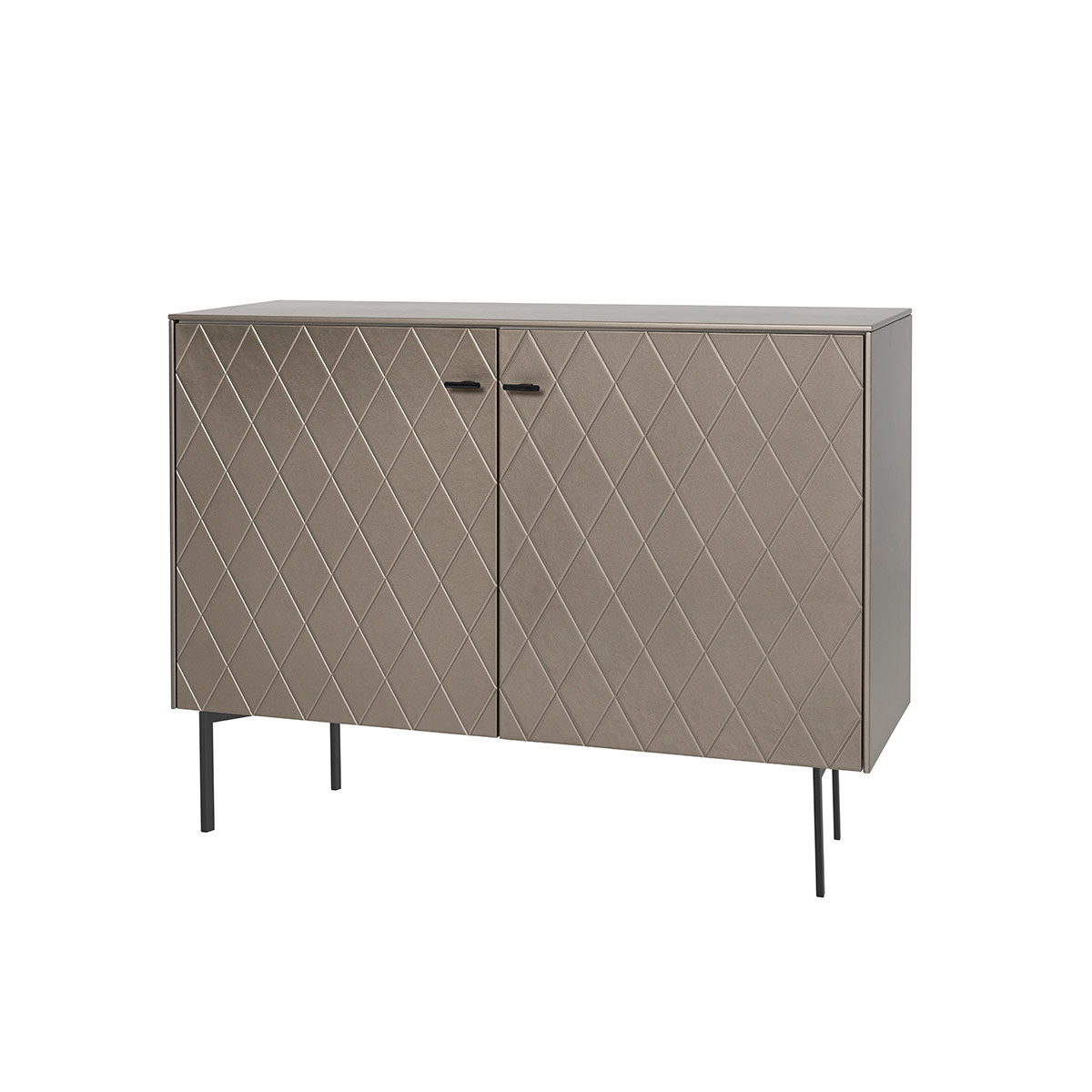 CONSOLA 2 PUERTAS. COLECCIÓN DIAMOND. LACADA ORO PERLADO, ZOCALO NEGRO GRAFITO. VISAGRA CON FRENO.