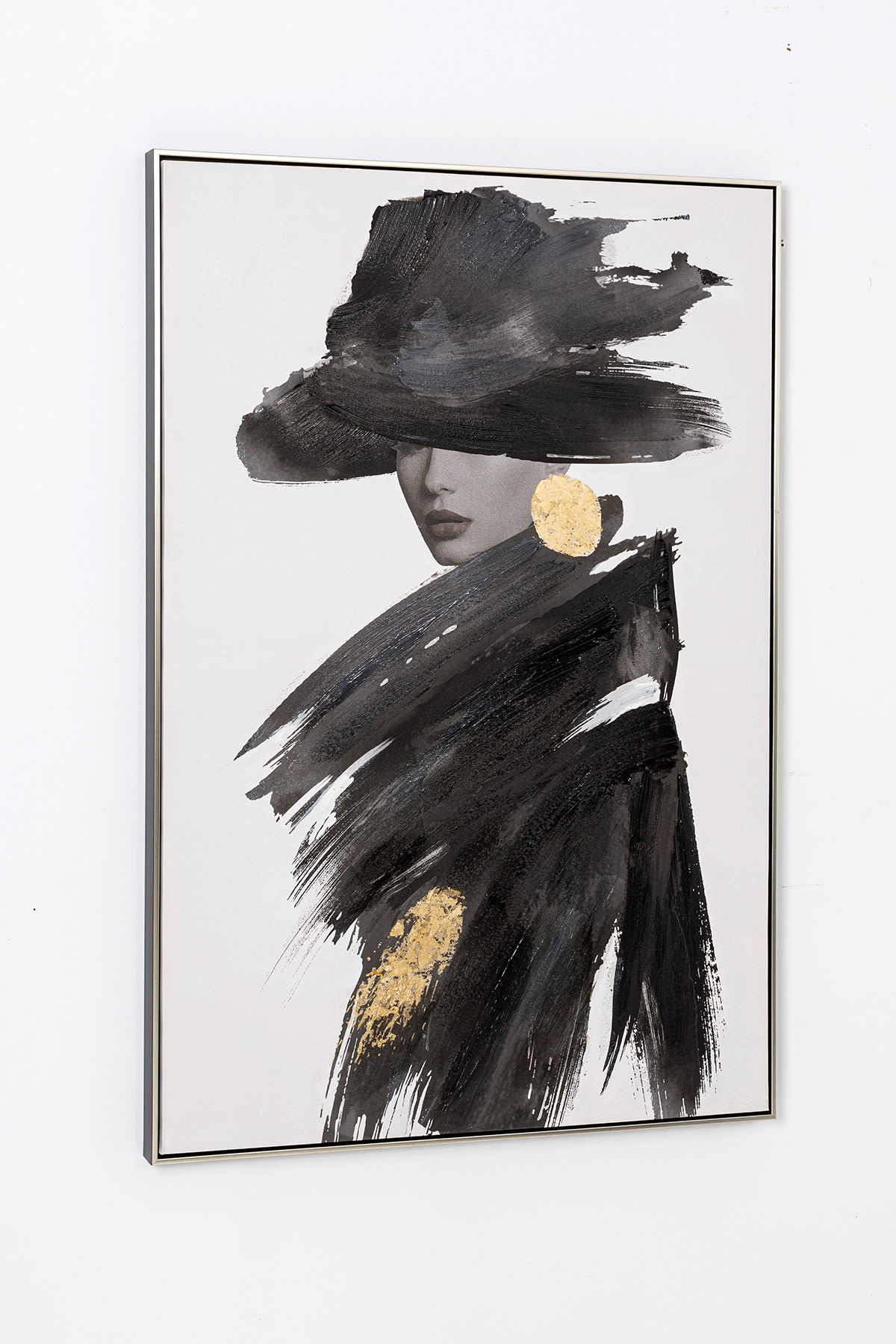 GDECO – CUADRO AL ÓLEO CHICA EN BLANCO Y NEGRO Y ORO 80*120CM