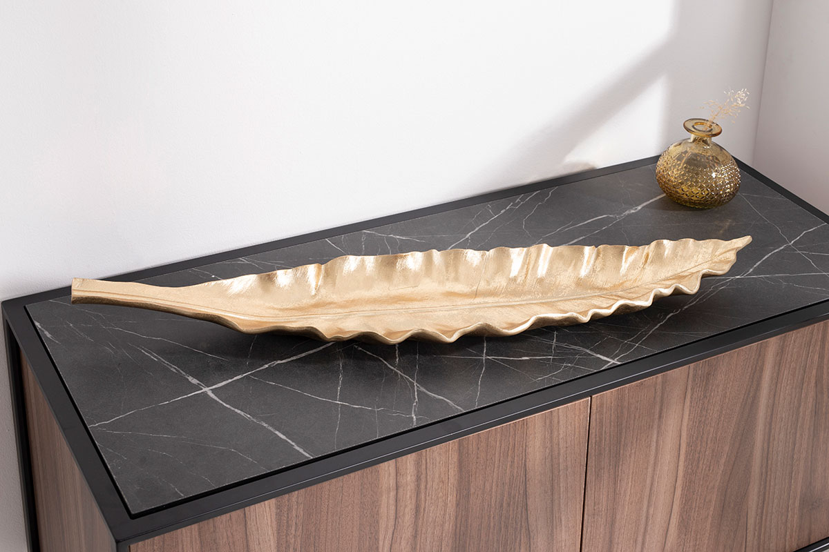 GDECO – Centro polyresina. Hoja dorada. 77x7x18cm