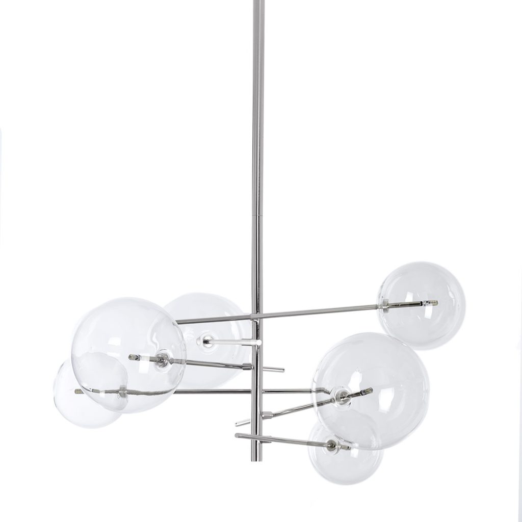 GDECO – LAMPARA TECHO 6 BOLAS CRISTAL, BOMBILLAS LED. COLOR PLATA CROMADO. 100*70*70 cm