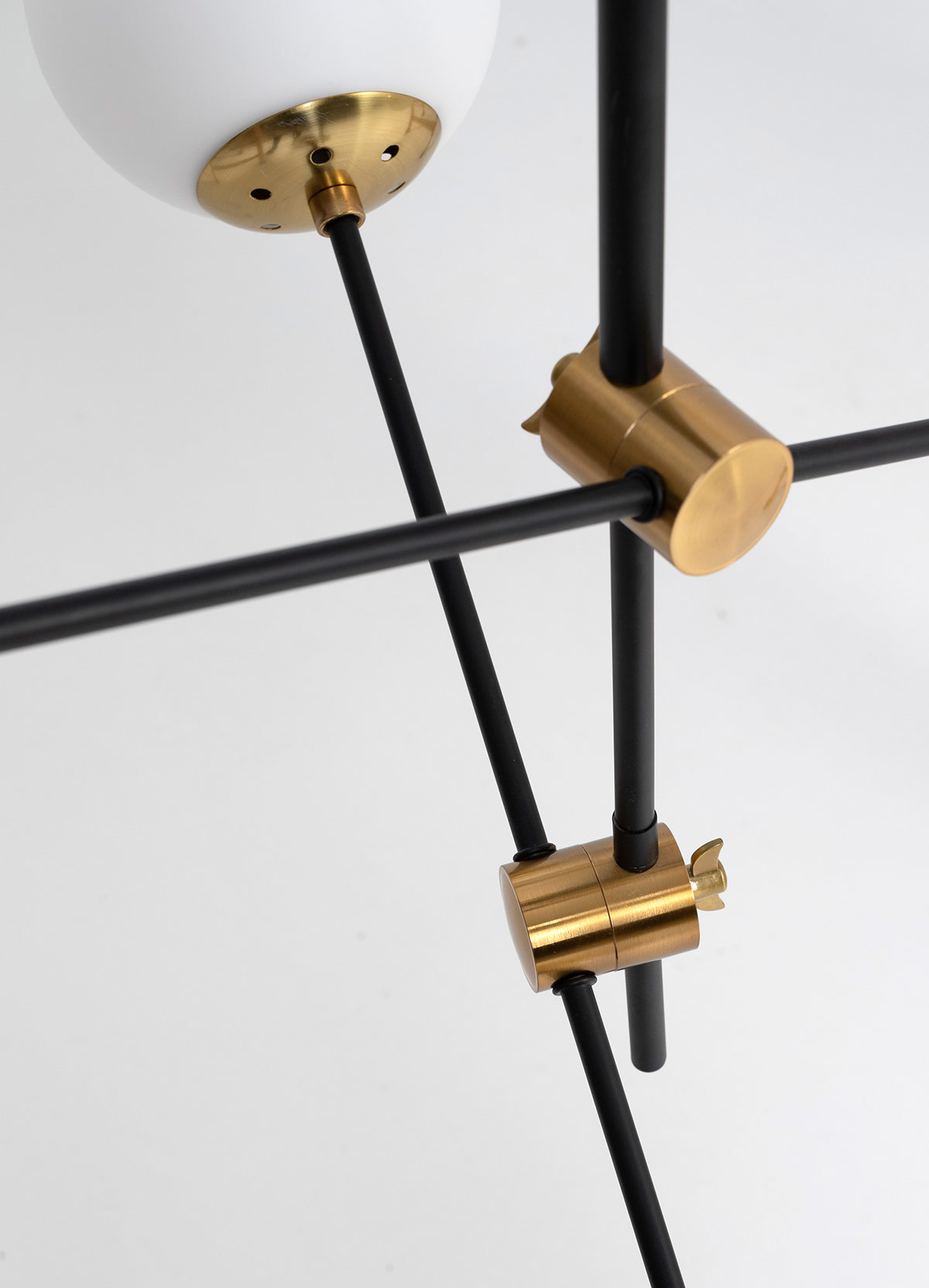 Lámpara techo metal negro, bolas cristal blancas. Medidas: 100*36*36 cm. Esta lámpara combina el metal y el cristal para dar el toque de pieza única que necesita cualquier estancia: desde un salón como luz de lectura, hasta la mesita de tu habitación. Recuerda limpiarlo con un paño húmedo y no usar productos químicos que puedan dañar sus materiales.