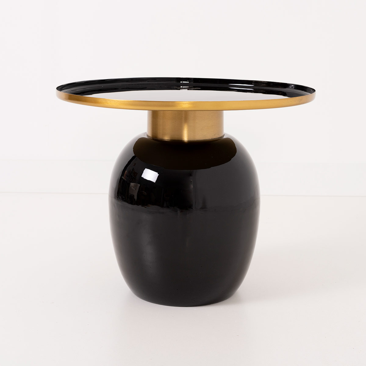 MESA AUXILIAR 50*50*42 CM. BASE METAL DORADO Y ESMALTADO NEGRO