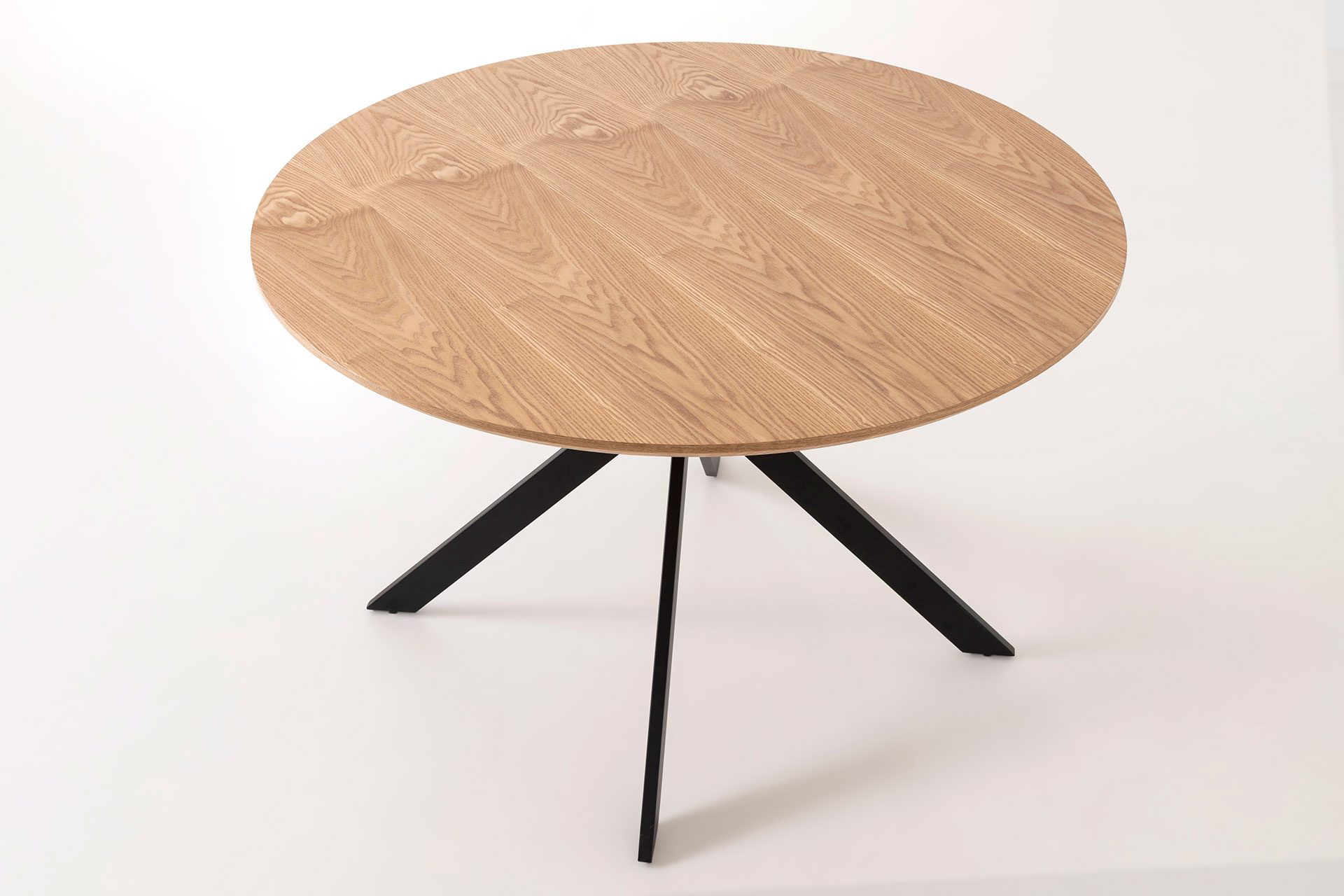 GDECO – MESA COMEDOR TAPA REDONDA 120*120*75CM, TAPA CHAPA ROBLE, PIE METAL NEGRO