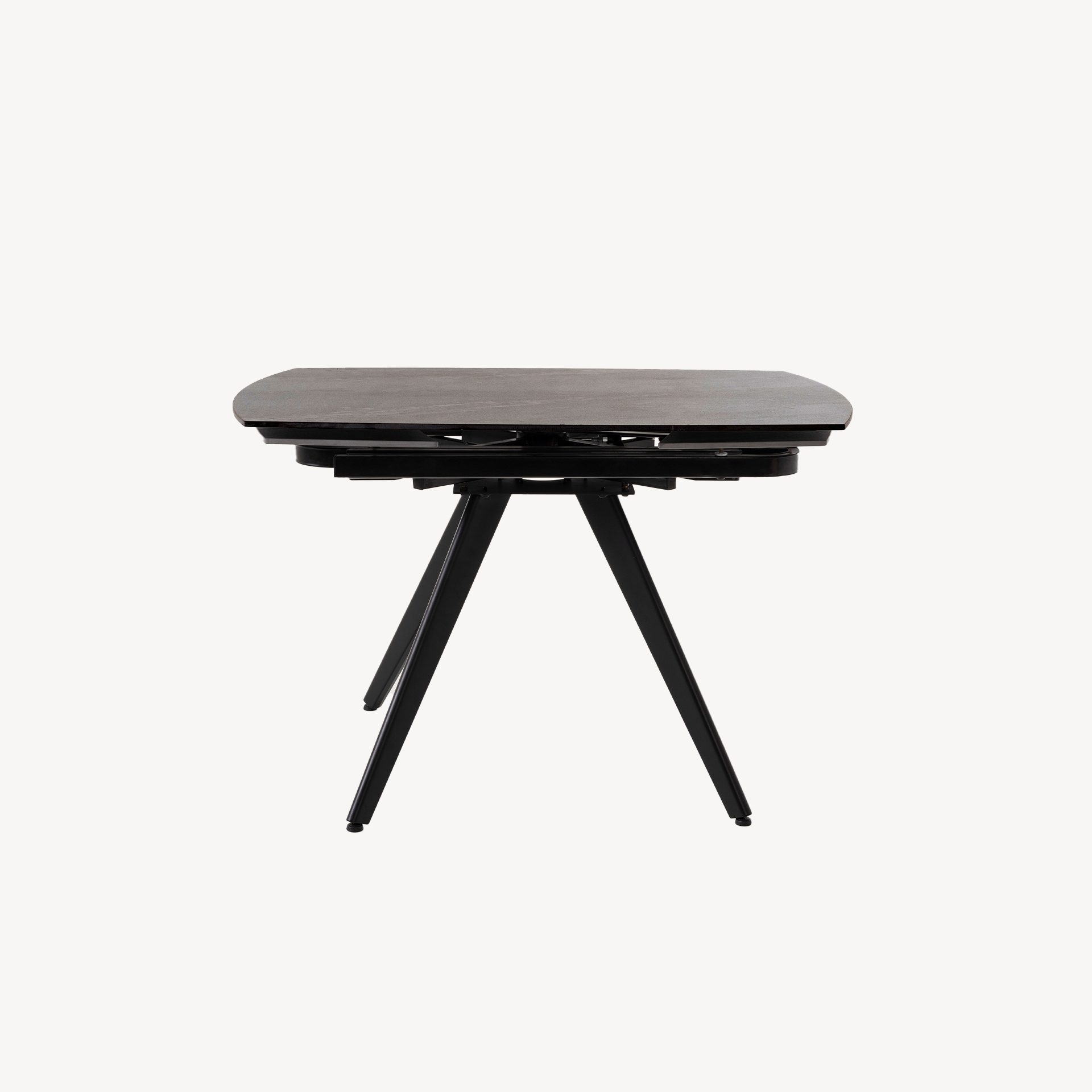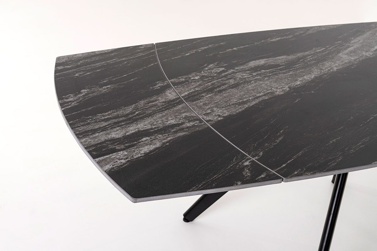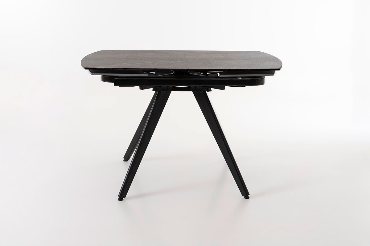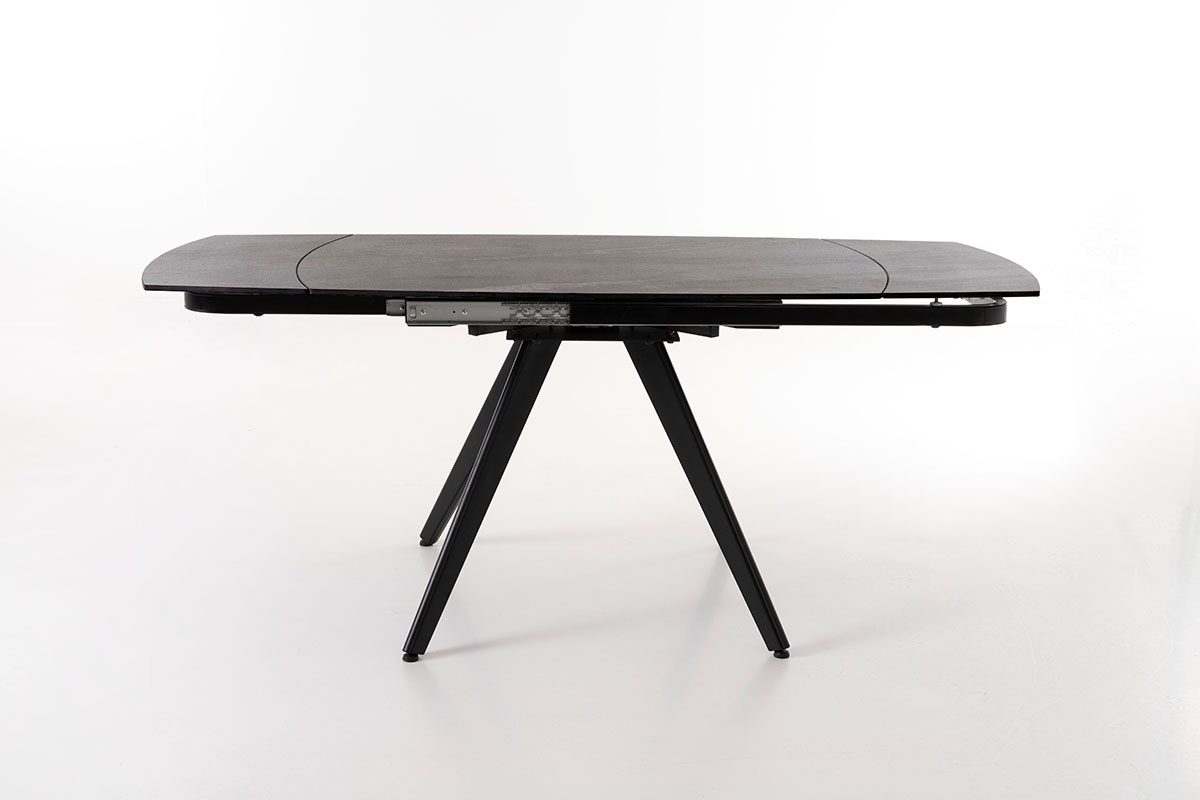GDECO – MESA EXTENSIBLE 120/180*80*75 CM, TAPA PORCELANICO NEGRA Y BASE METAL NEGRO