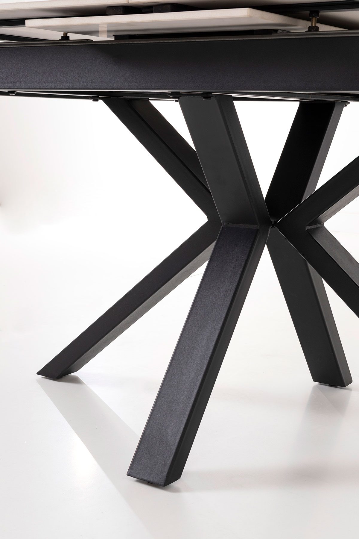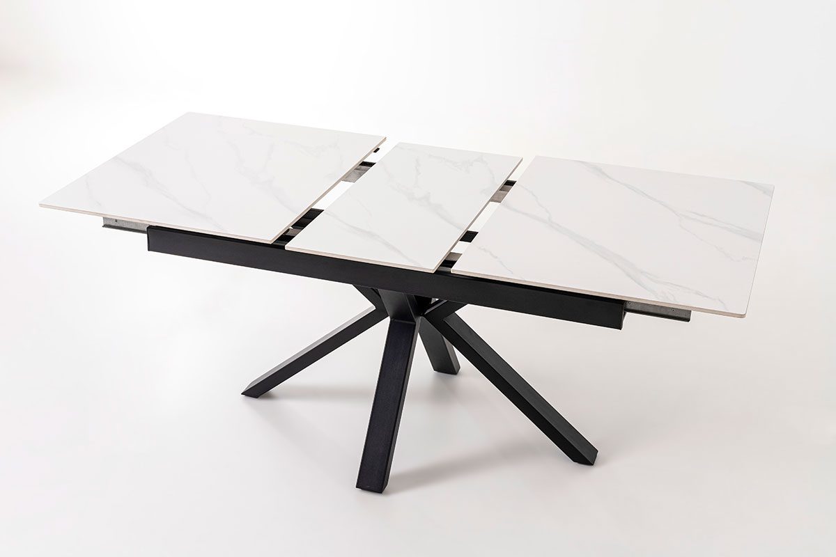 GDECO – MESA EXTENSIBLE 140/180*85*76 CM, TAPA PORCELANICO BLANCO Y BASE METAL NEGRO
