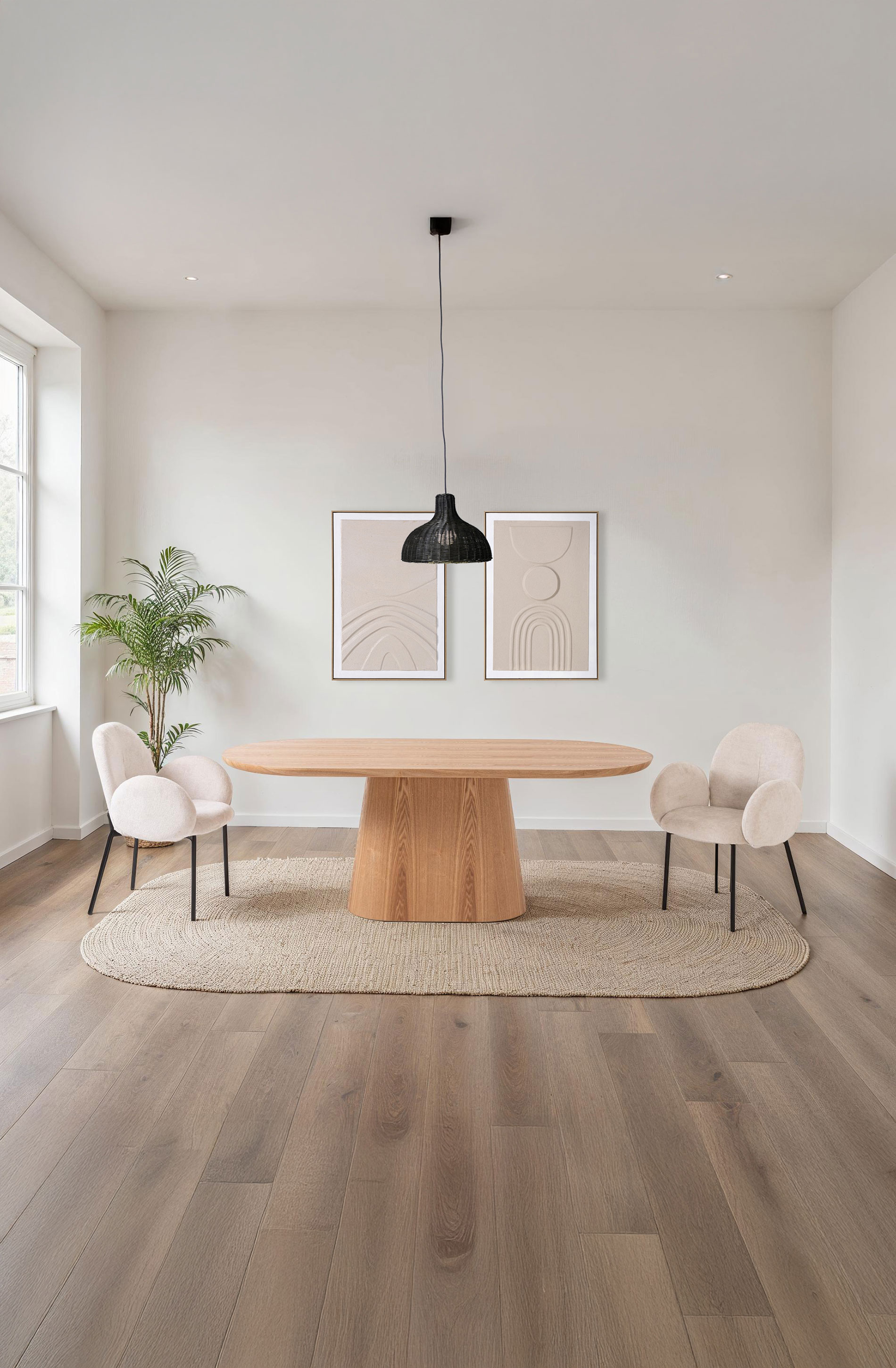GDECO – MESA COMEDOR CHAPA ROBLE, TAPA OVALADA 200*90*75CM