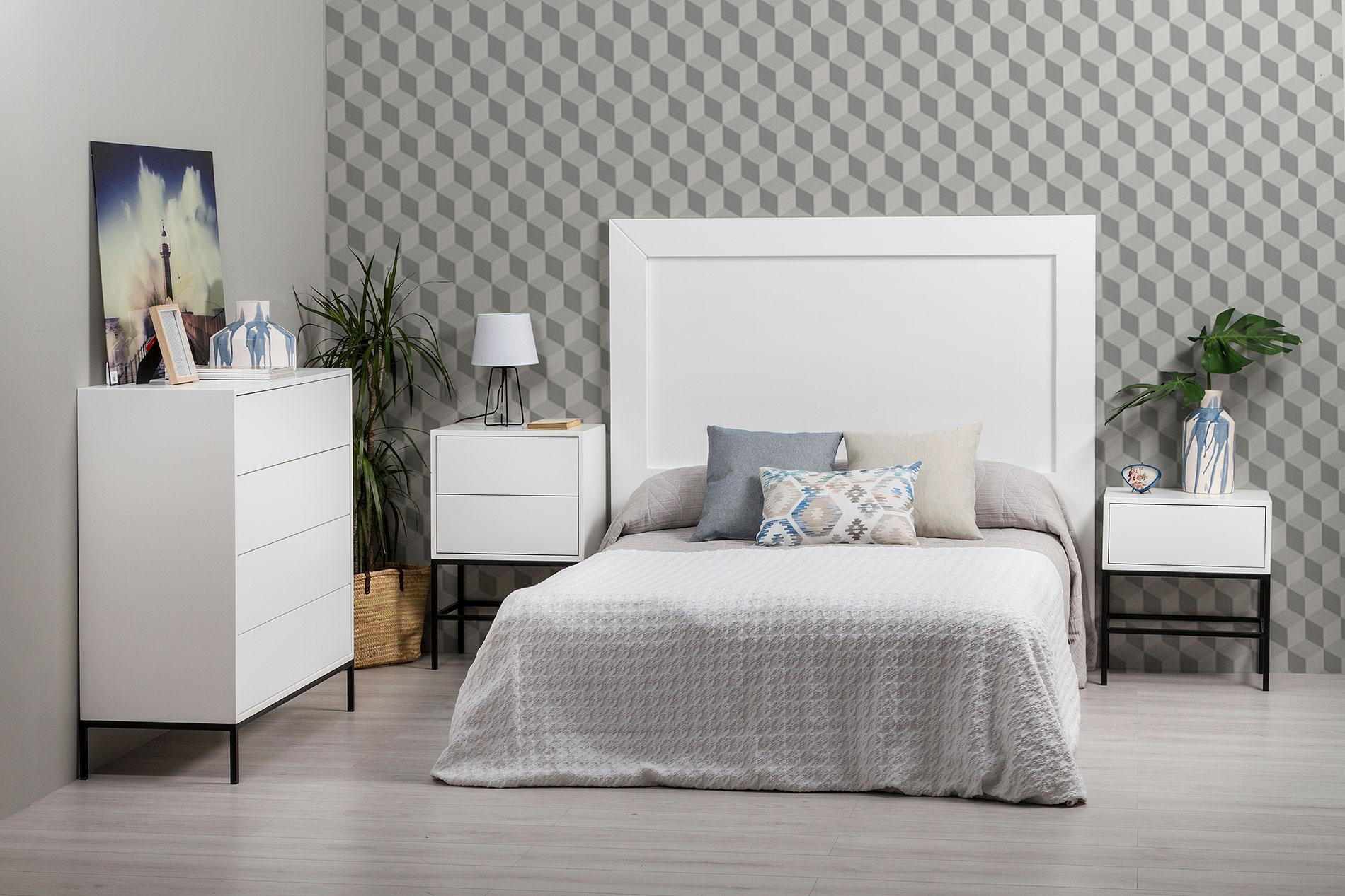 MESITA PUSH 2 CAJONES LACADA BLANCO. BASE METAL NEGRO. 74*48*33,5 CM
