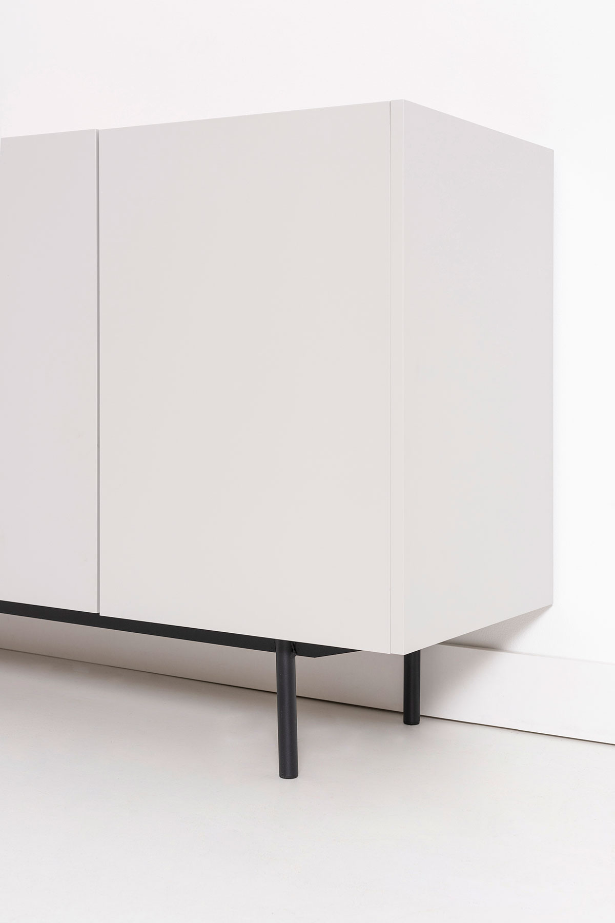 GDECO – APARADOR POL. LACADO GRIS PIEDRA Y CHAPA DE ROBLE. PATAS METAL NEGRO