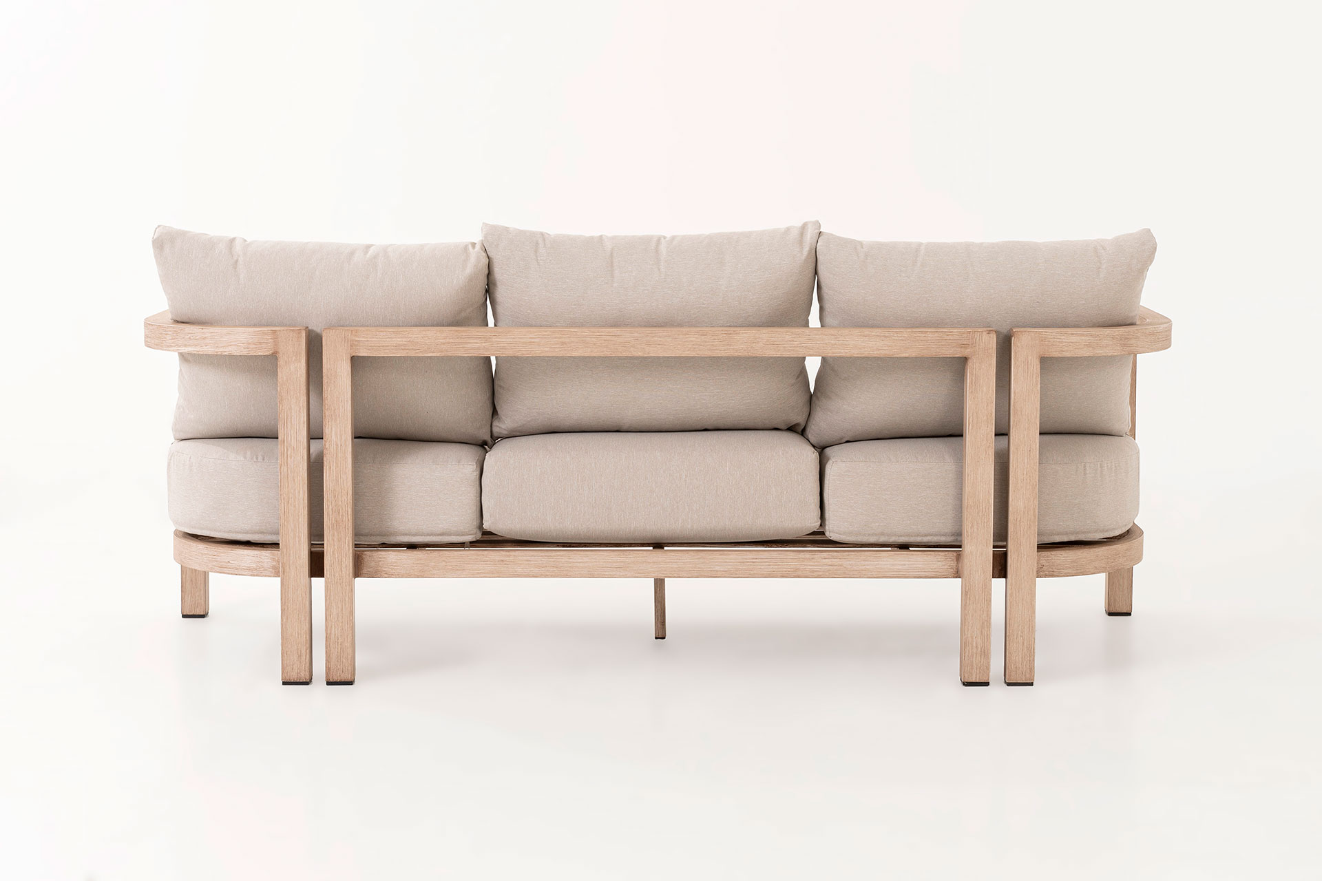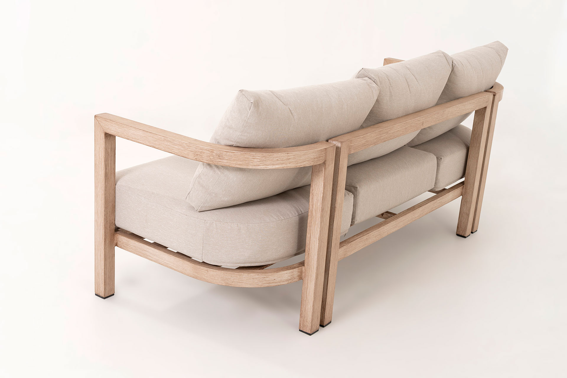 Set sofás exterior y mesa de centro Ava, 5 personas. Aluminio efecto metal y tejido beige