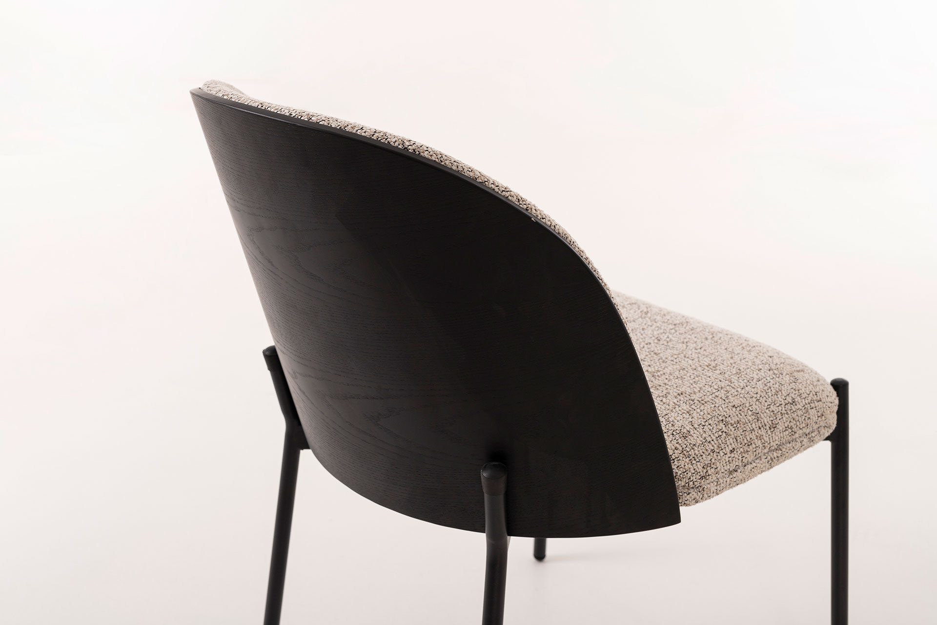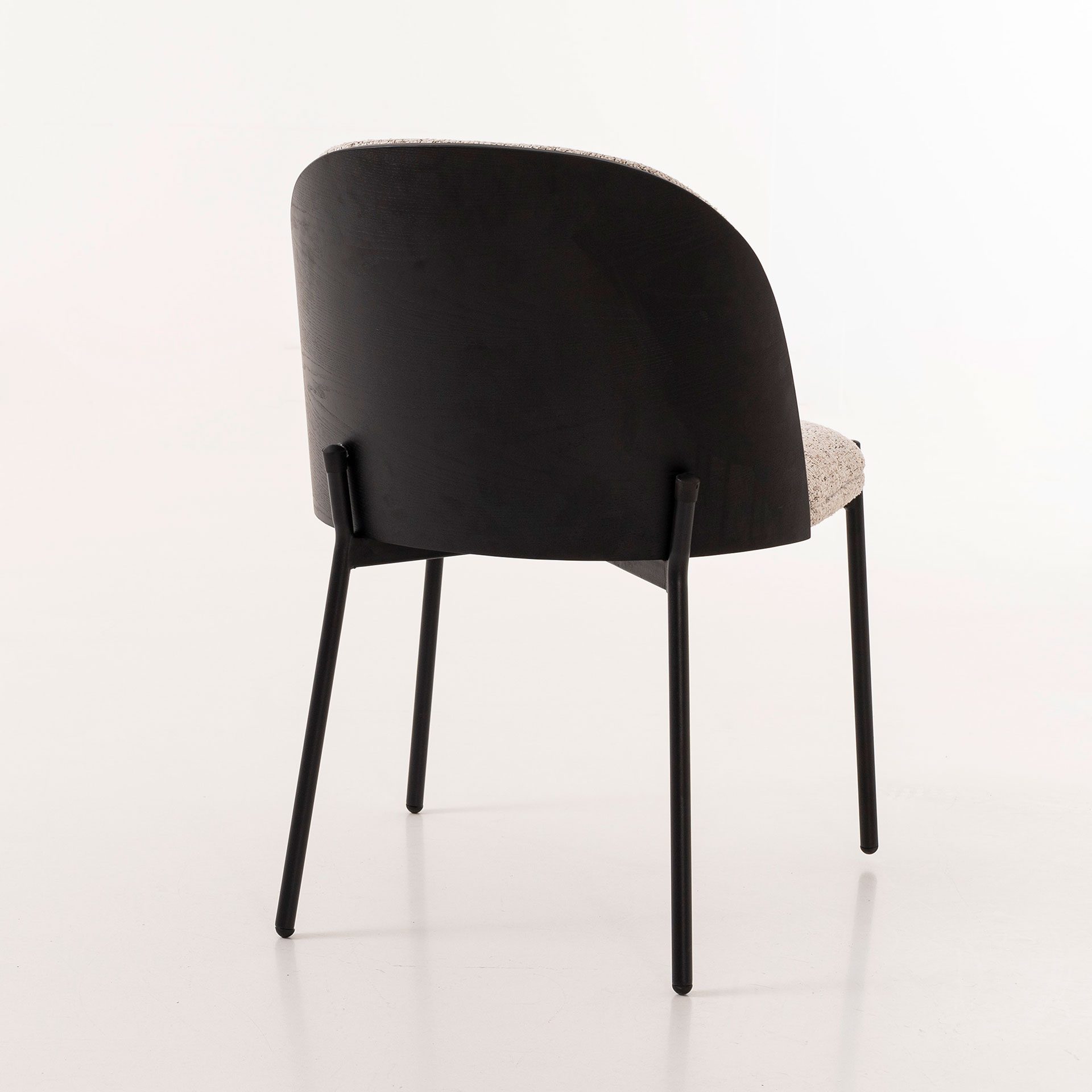 SILLA INGRID 80*51*59 CM, ASIENTO CHAPA NEGRA CURVADA, TAPIZADO BLANCO JASPEADO Y PATAS METALICAS EN NEGRO, TEJIDO IGNIFUGO Y AQUACLEAN