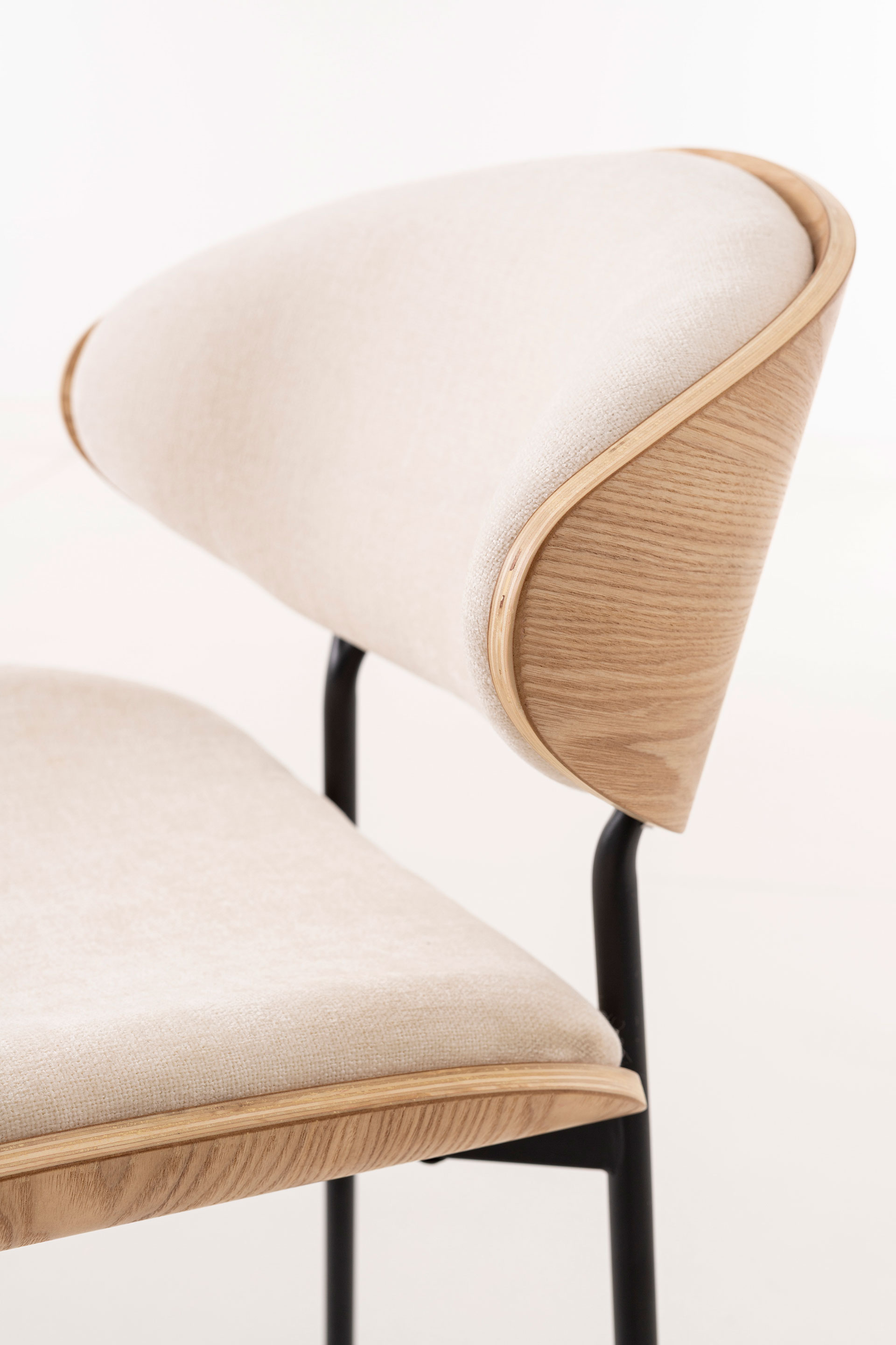 GDECO – SILLA LENA 75*50*55 CM, ASIENTO CHAPA ROBLE CURVADO, TAPIZADO BEIGE Y PATAS METALICAS EN NEGRO, TEJIDO AQUACLEAN