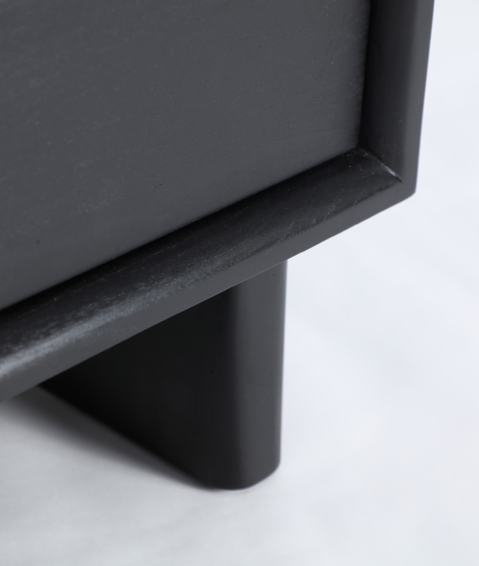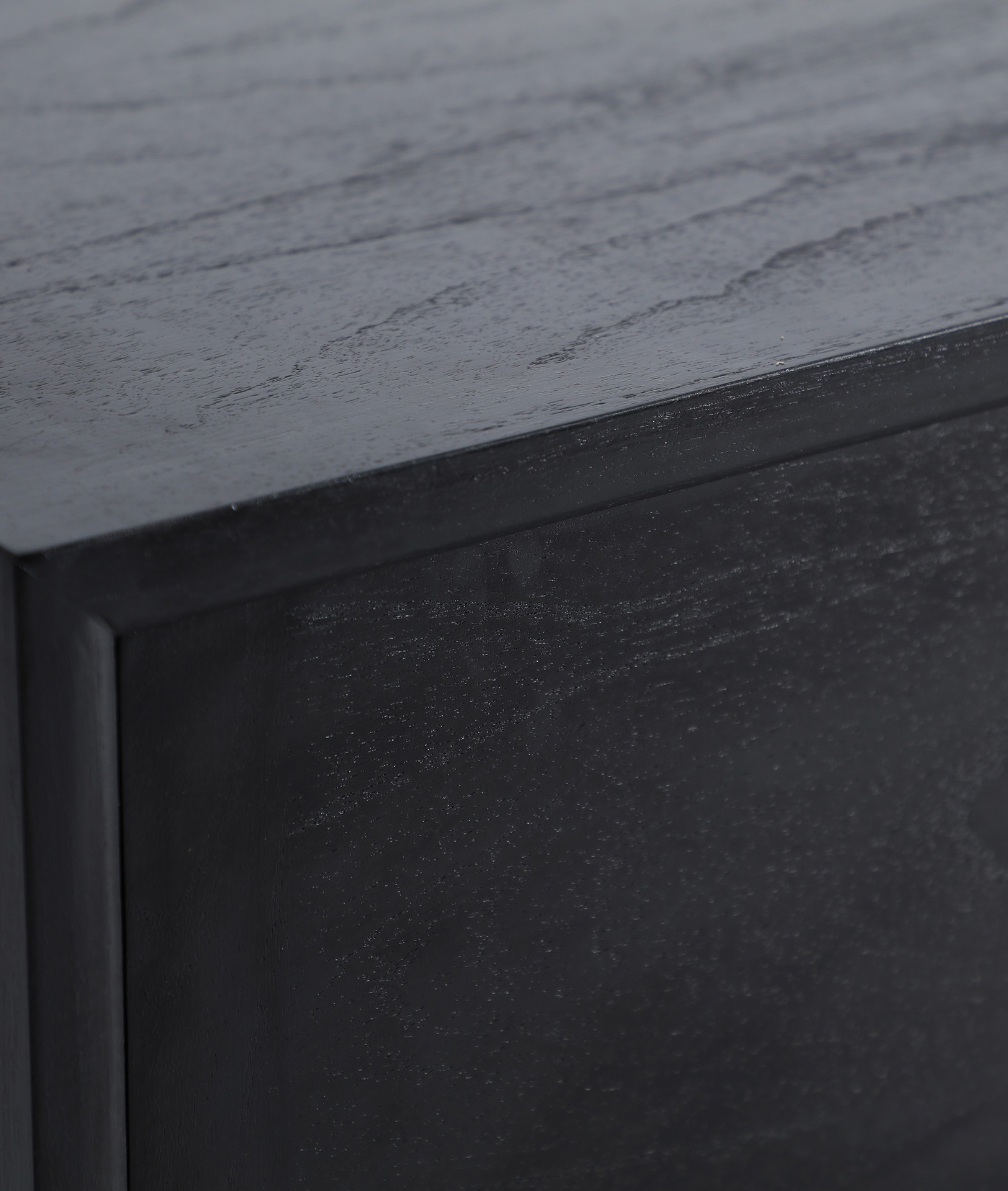 Aparador Demmin de estilo contemporáneo, fabricado en madera mindi en color negro.