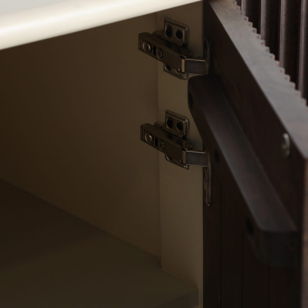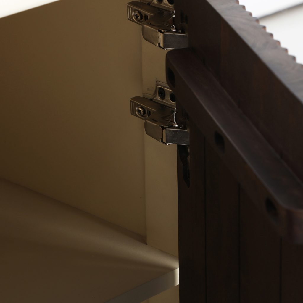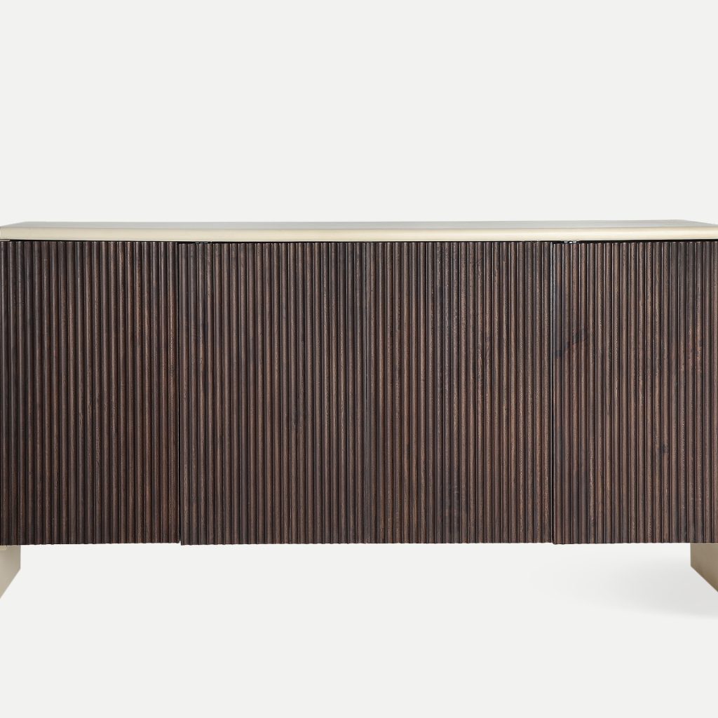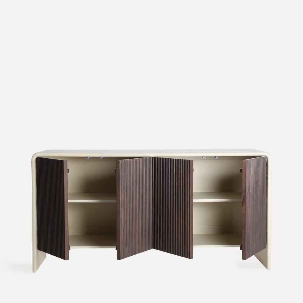 Aparador Milhar de estilo contemporáneo, fabricado en madera de mango en color marrón, combinado con madera dm en color beige.