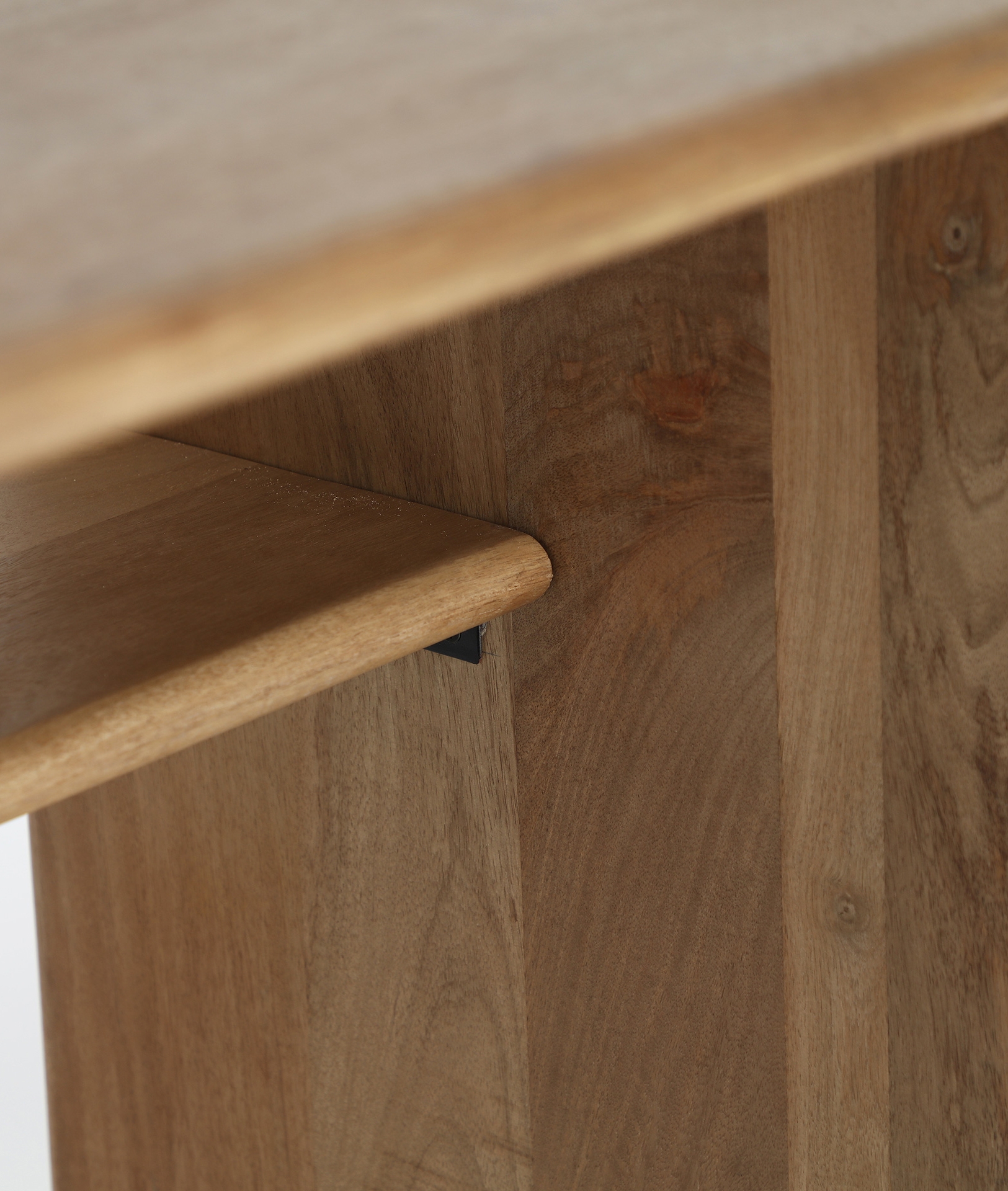 Escritorio Gaillac de estilo nórdico, fabricado en madera de mango en color marrón claro. Producto desmontable.
