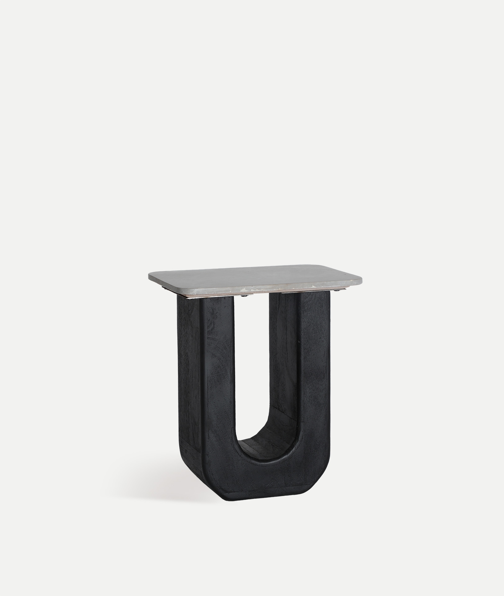 Mesa auxiliar Loches de estilo contemporáneo, fabricado en hormigón armado en color gris.