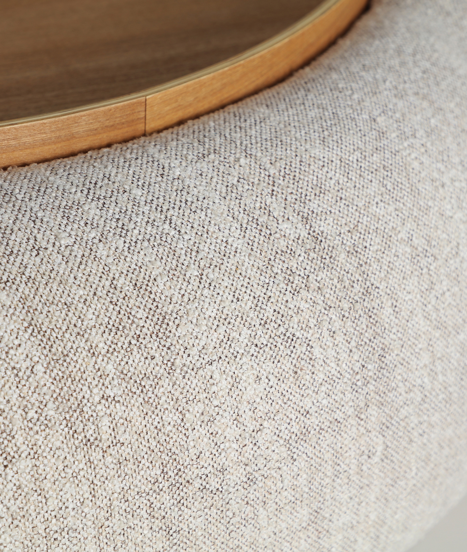 Mesa de centro Sils de estilo moderno, fabricado en madera dm en color marrón claro, combinado con poliéster en color beige.