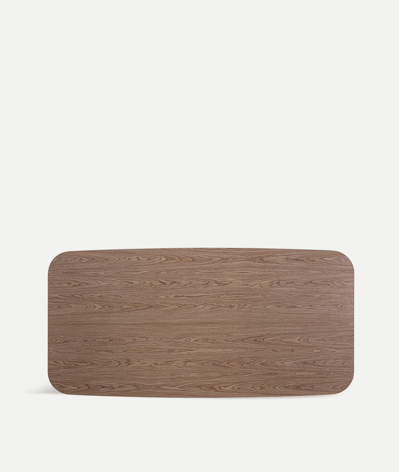 Mesa comedor Arko de estilo contemporáneo, fabricado en madera dm en color marrón, combinado con chapa de madera. Producto desmontable.
