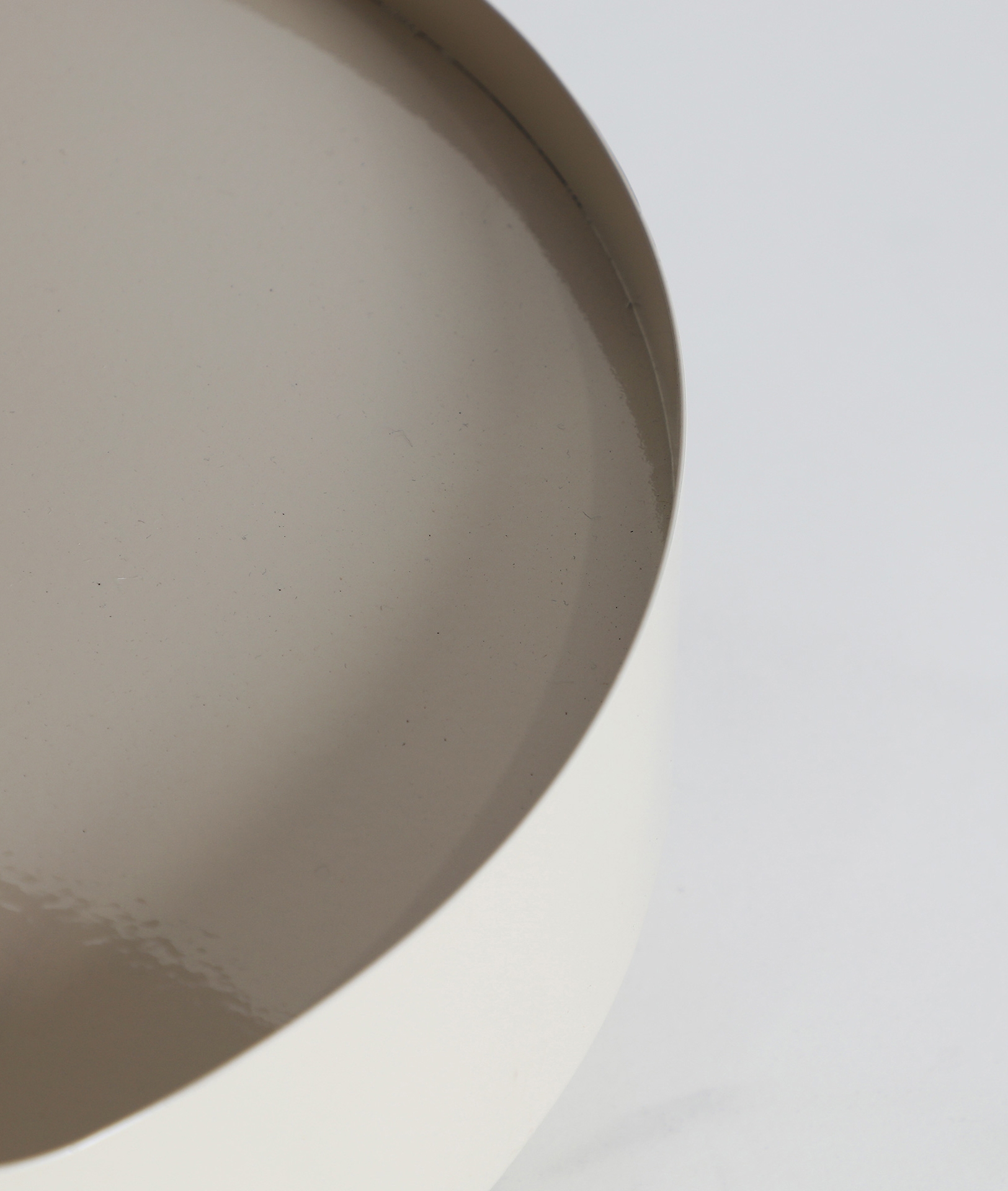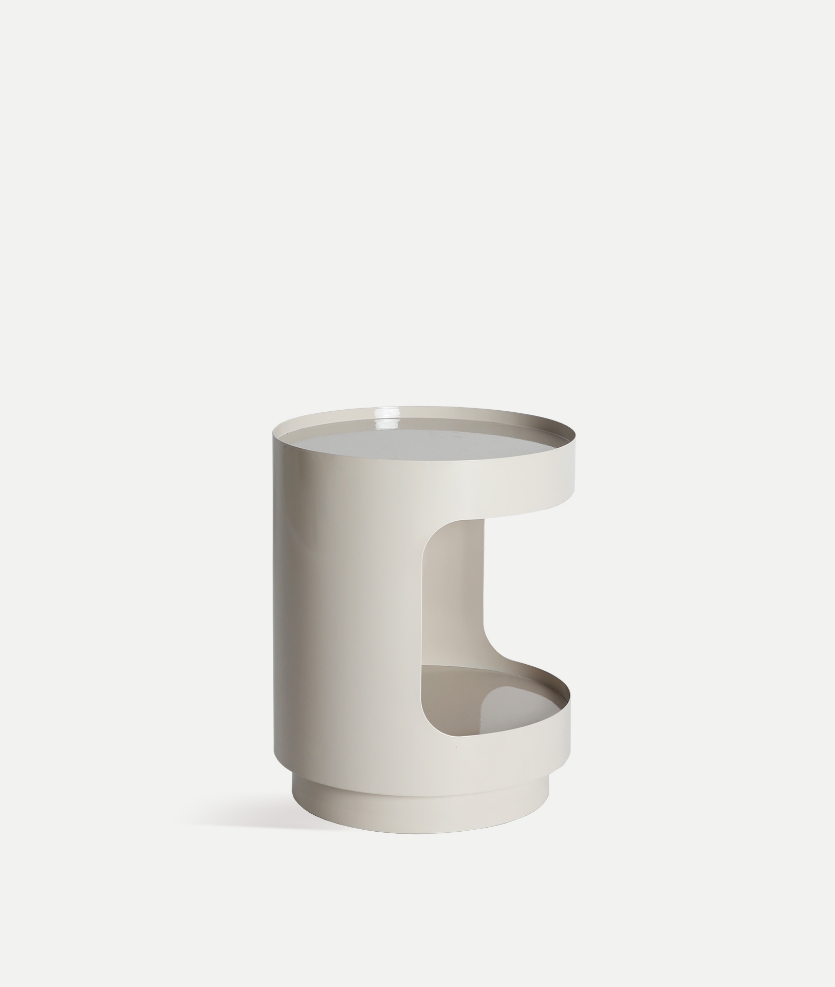 Mesita de noche Mist de estilo contemporáneo, fabricado en hierro en color blanco roto con acabado brillo.
