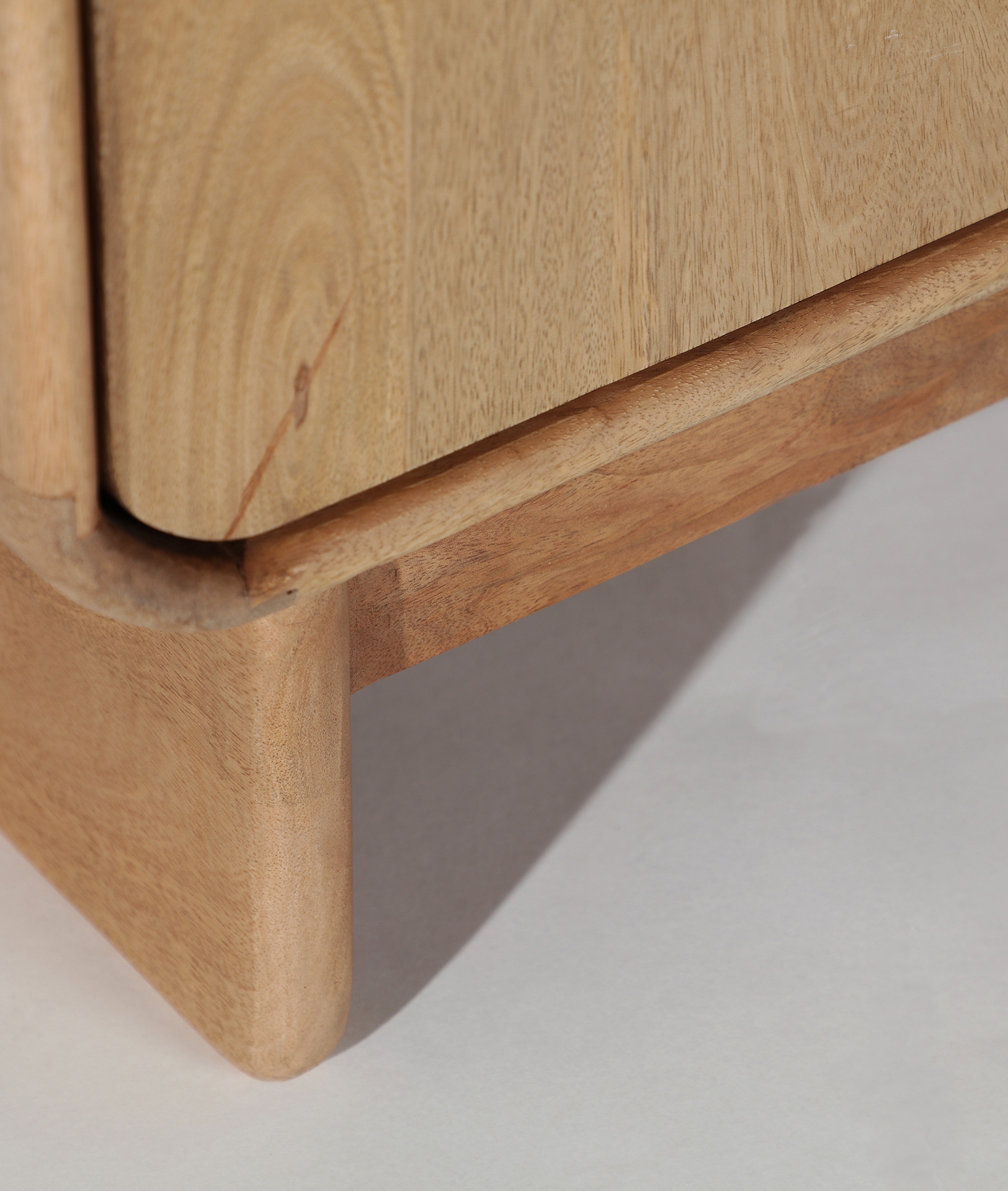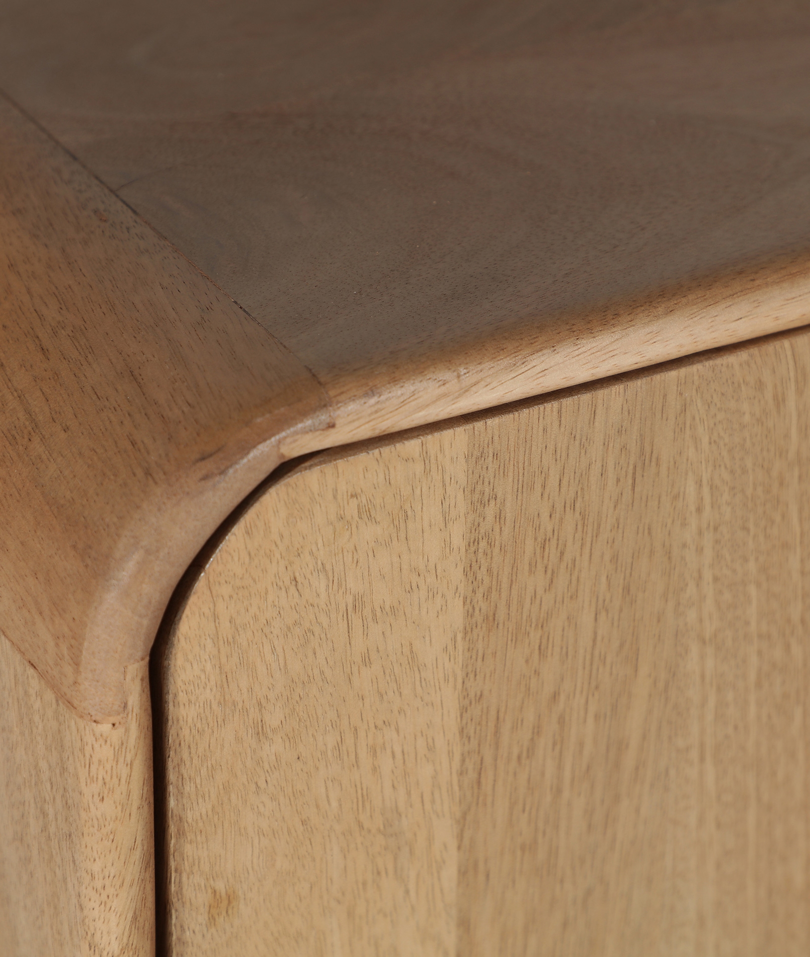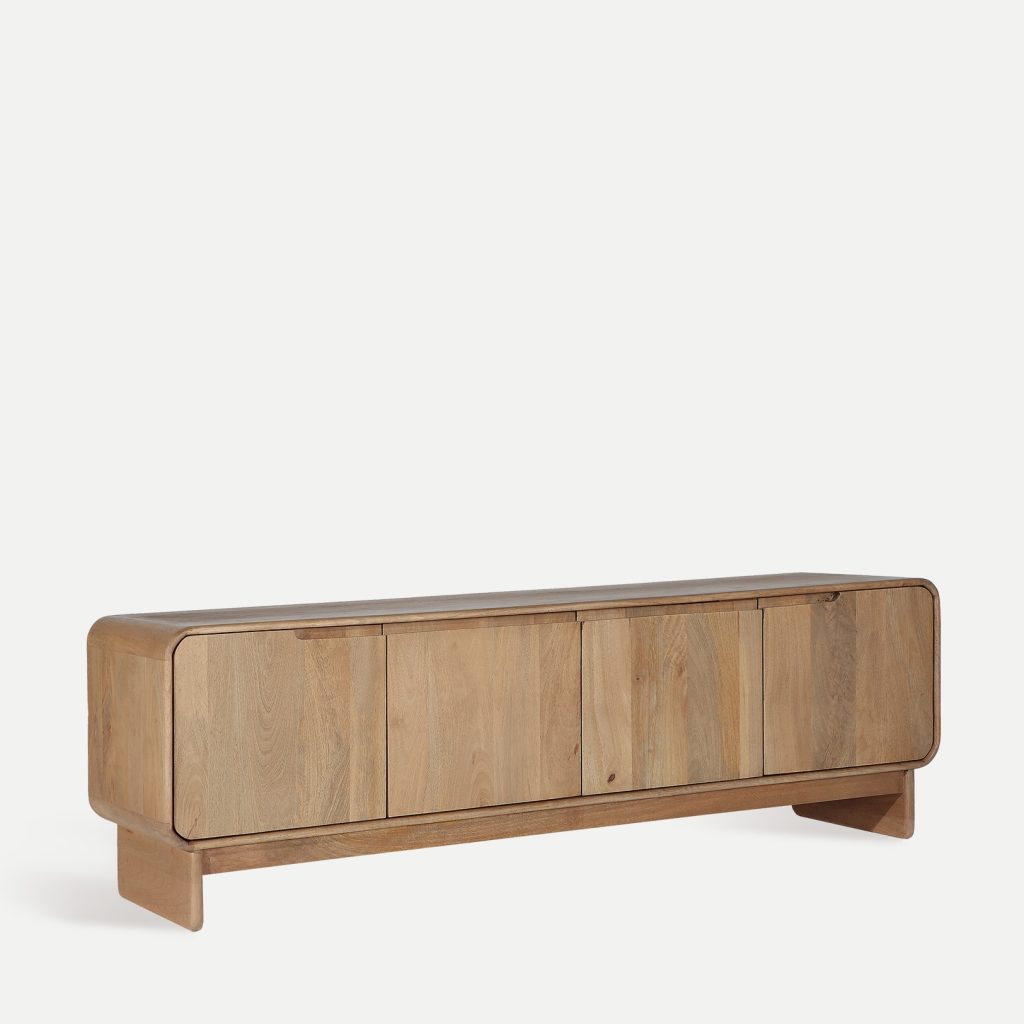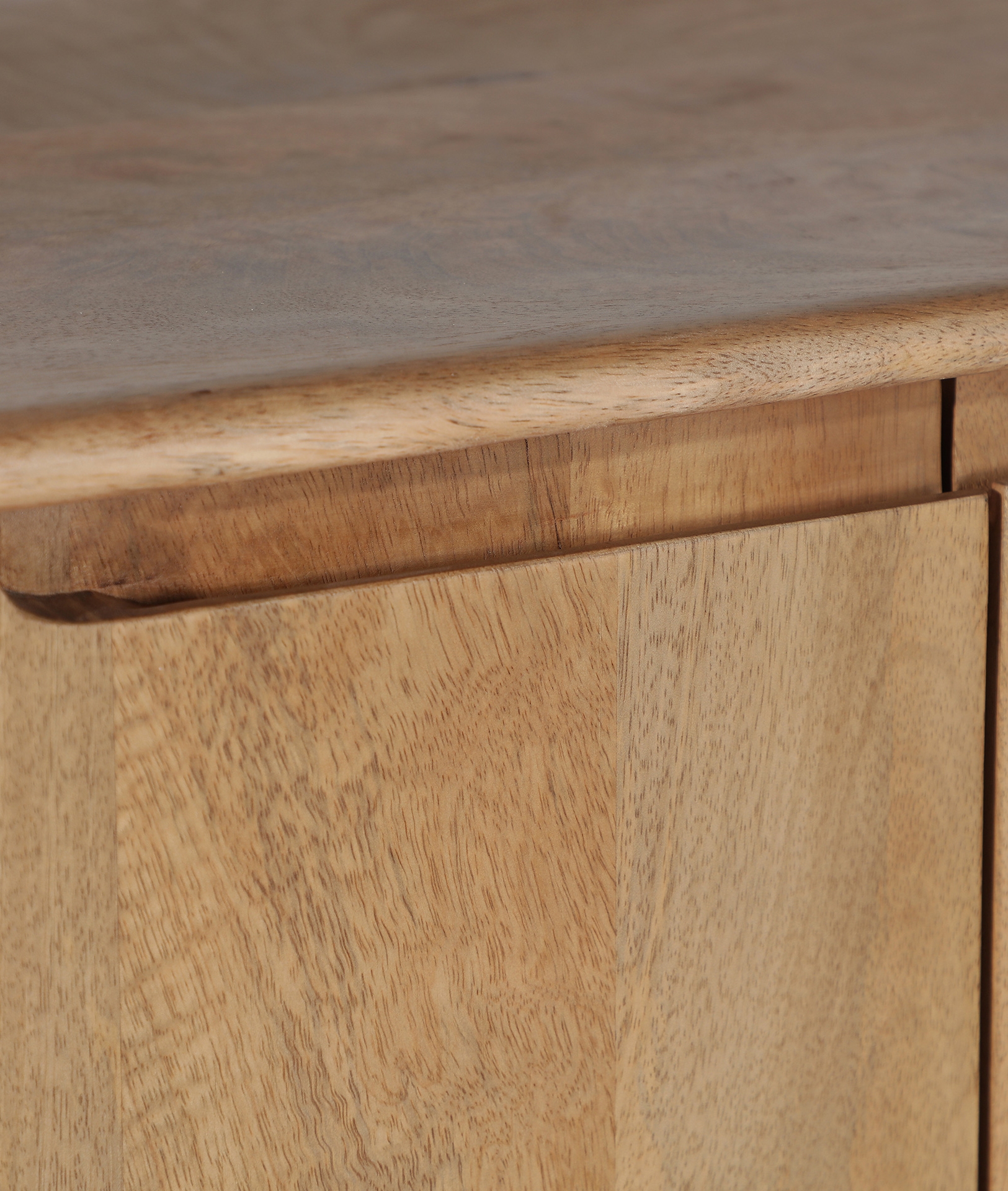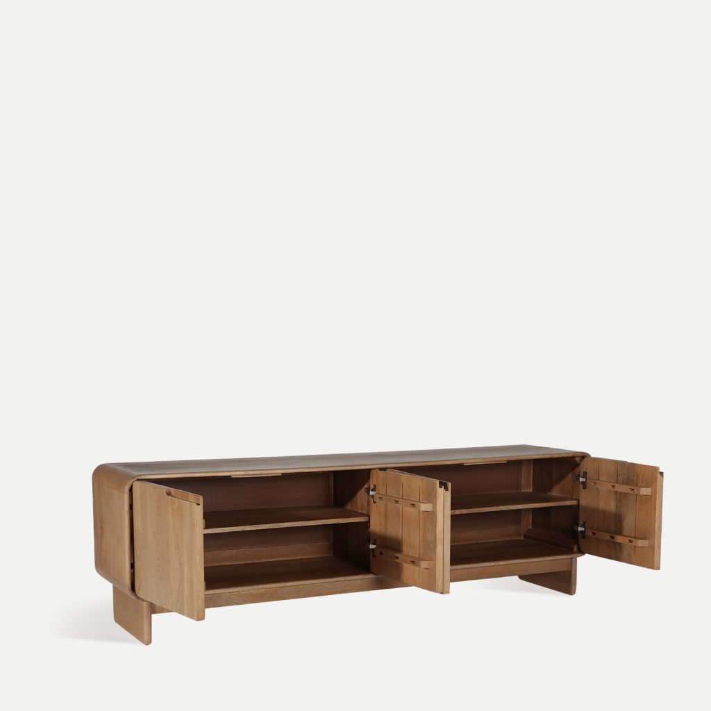 Mueble tv Canada de estilo nórdico, fabricado en madera de mango en color marrón claro en color champagne.