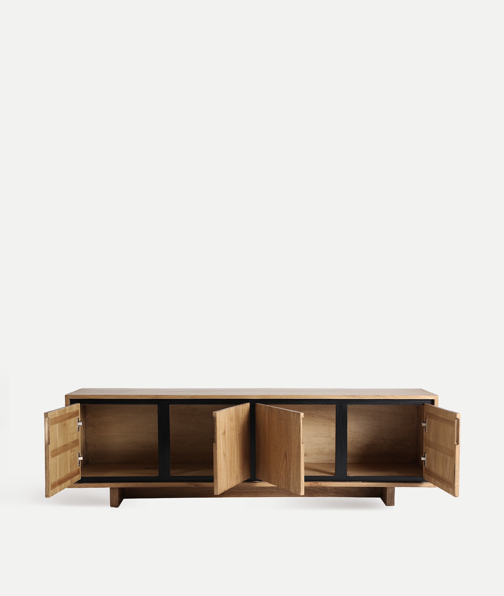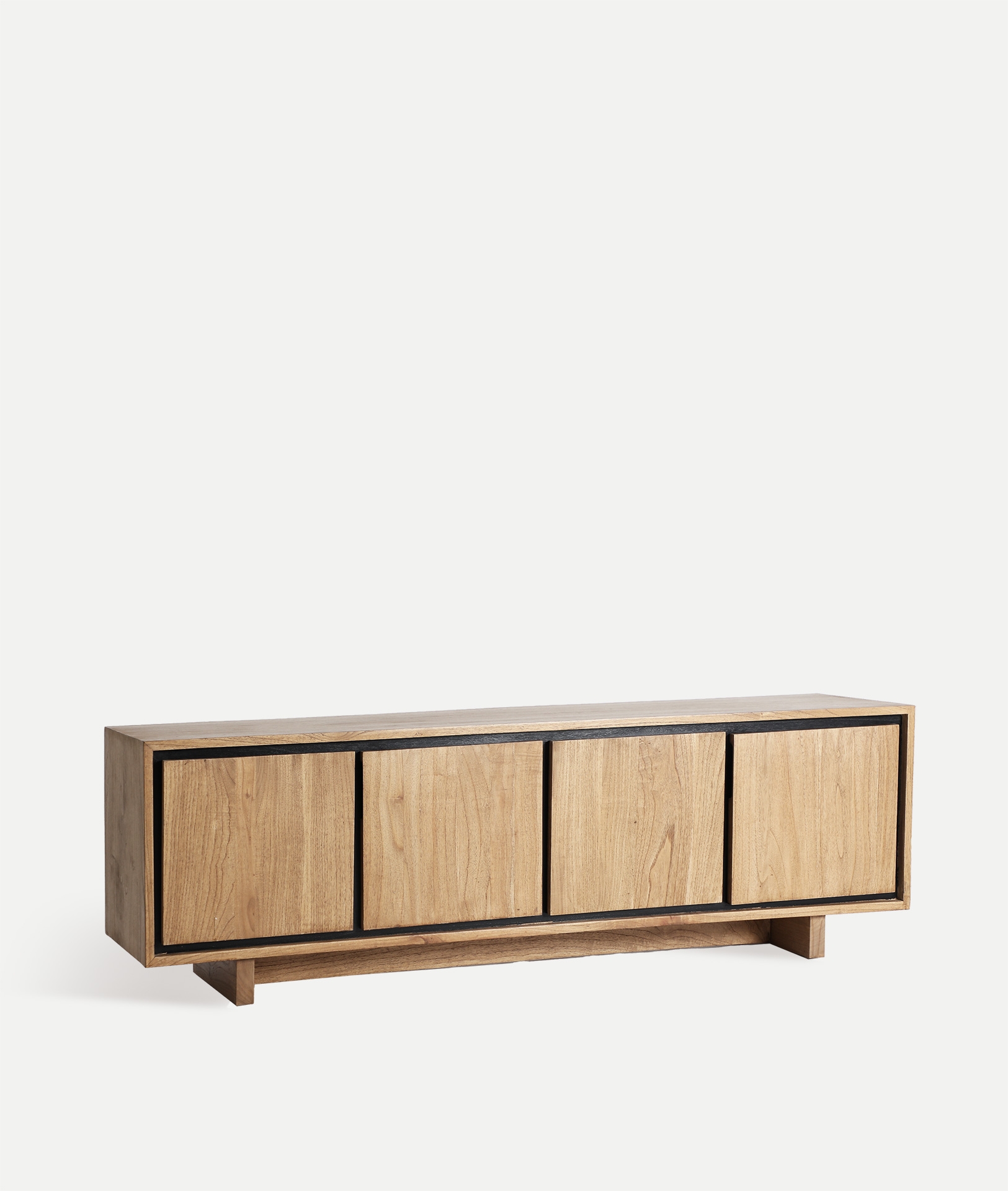 Mueble tv Osby de estilo nórdico, fabricado en madera mindi en color marrón claro en color negro.
