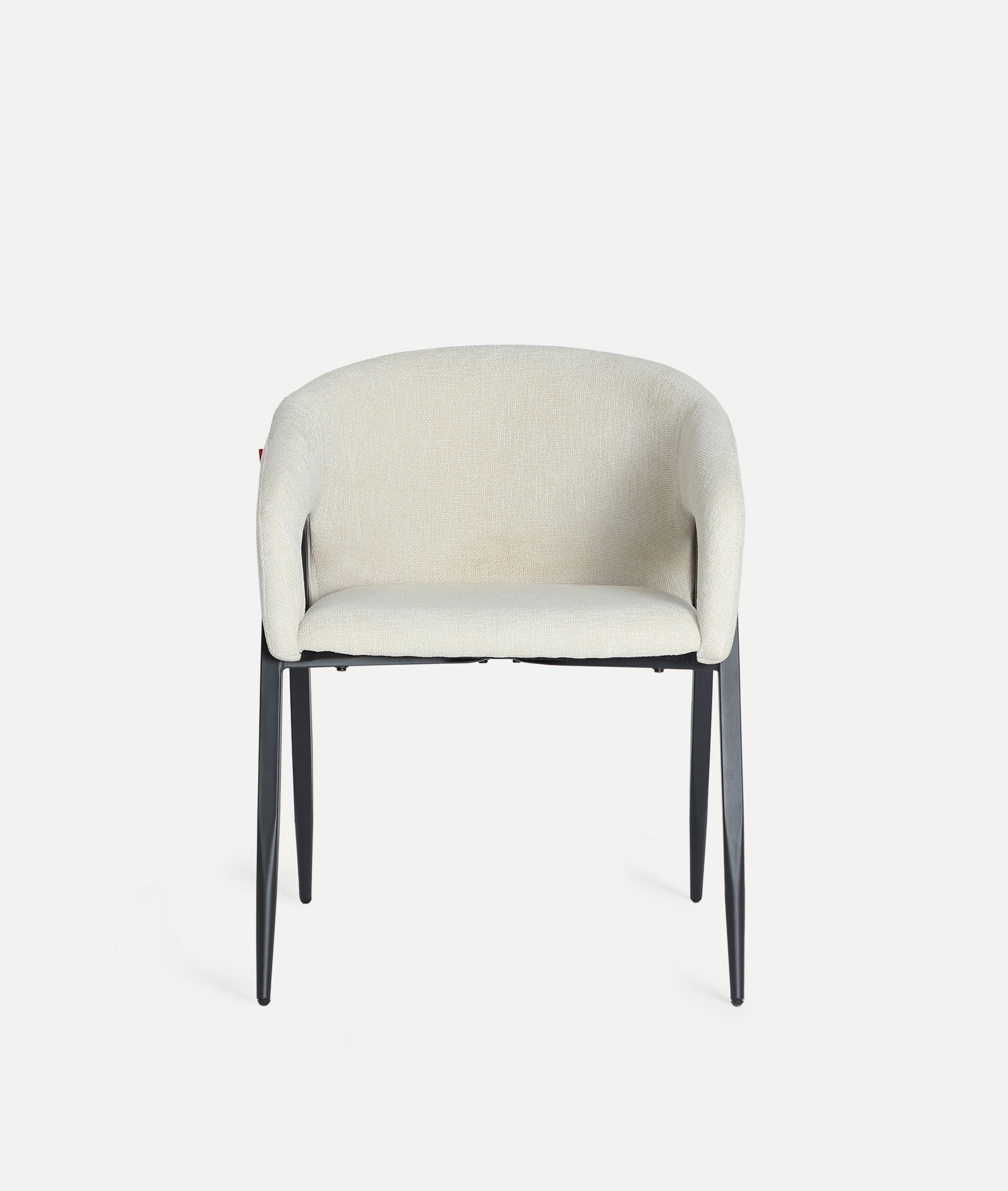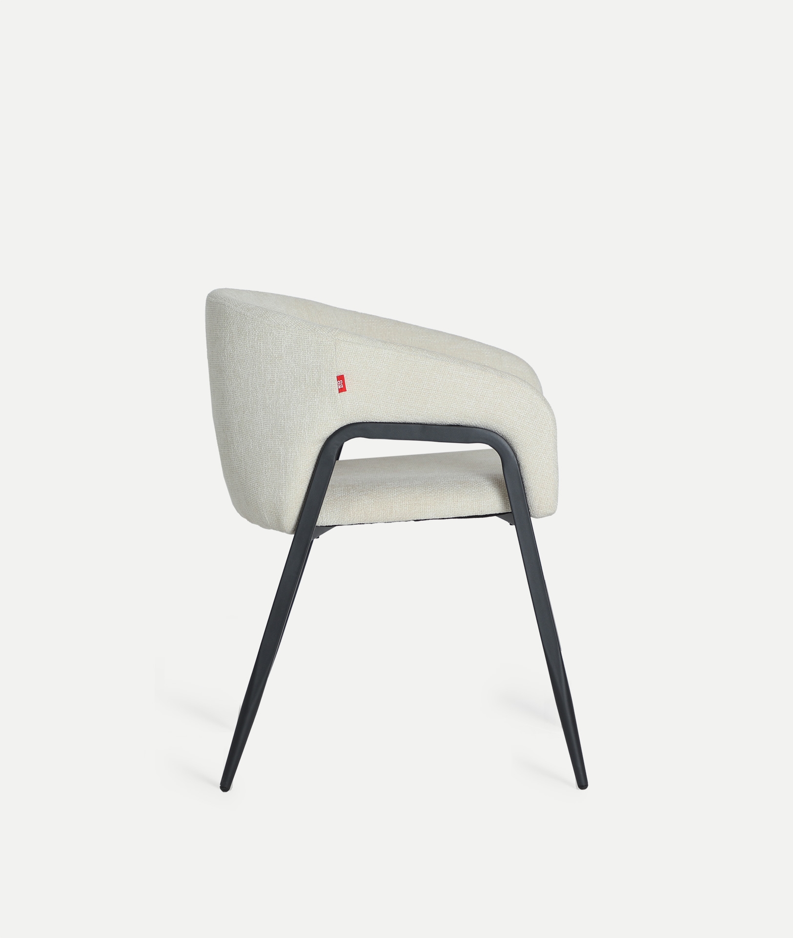 Silla Aren de estilo contemporáneo, fabricado en poliéster en color blanco roto, combinado con hierro en color negro y espuma. Producto desmontable.