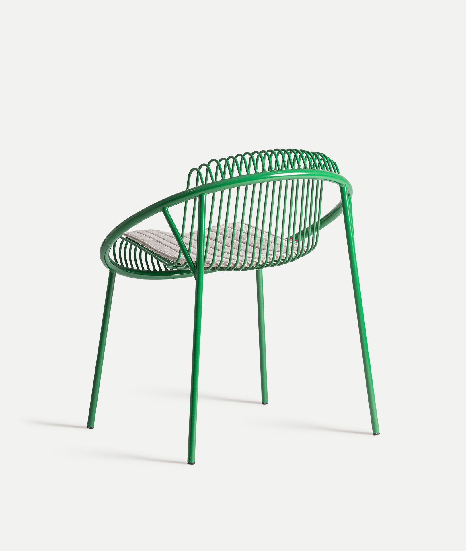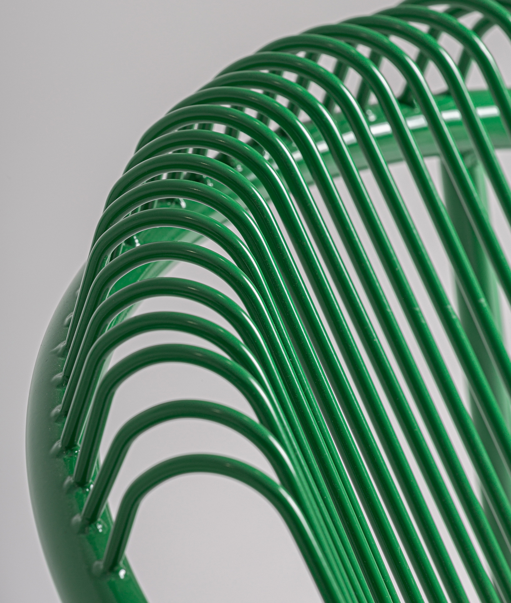Silla Brienz de estilo contemporáneo, fabricado en hierro en color verde, combinado con poliéster en color beige. Producto desmontable.