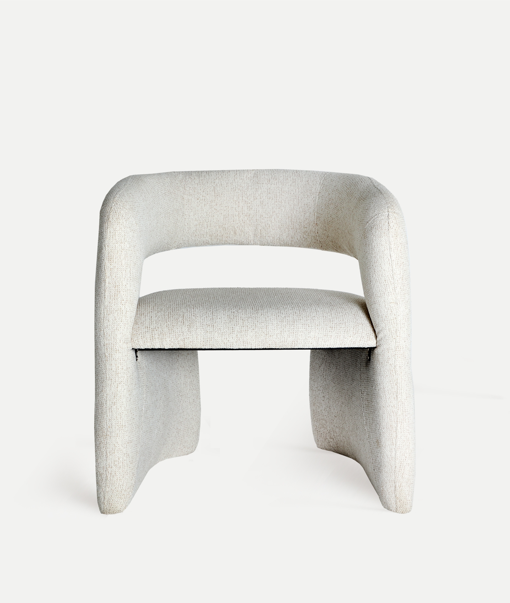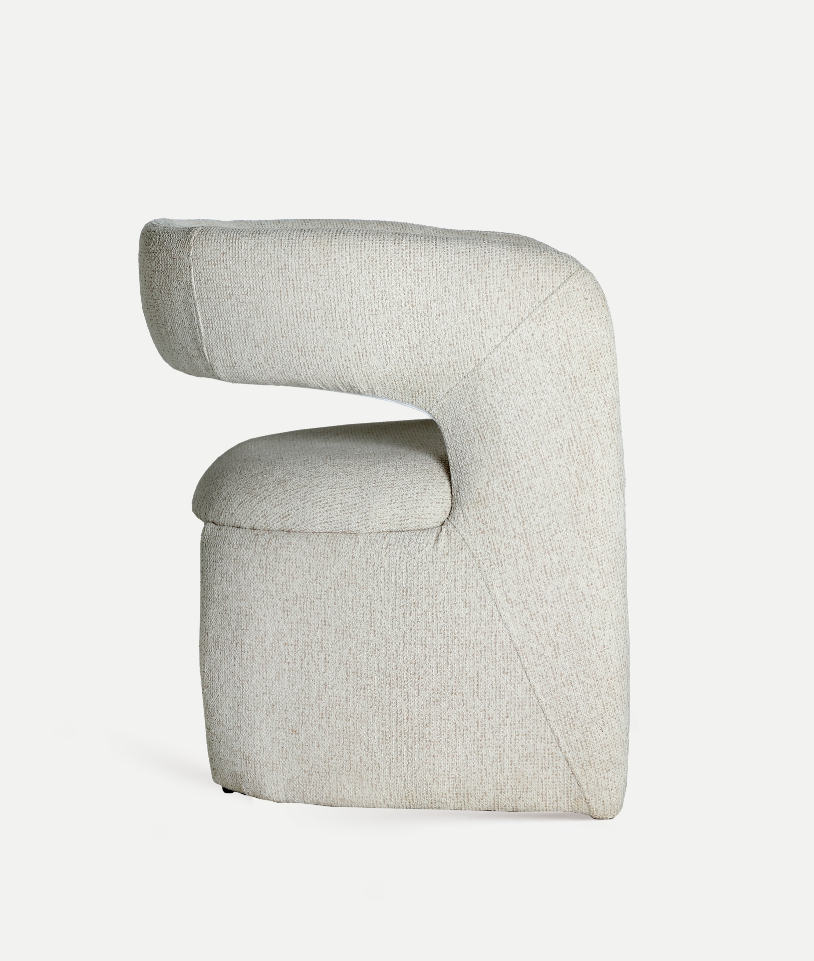 Silla honeg de estilo shabby chic, fabricado en poliéster en color beige con acabado jaspeado, combinado con madera eucalipto.