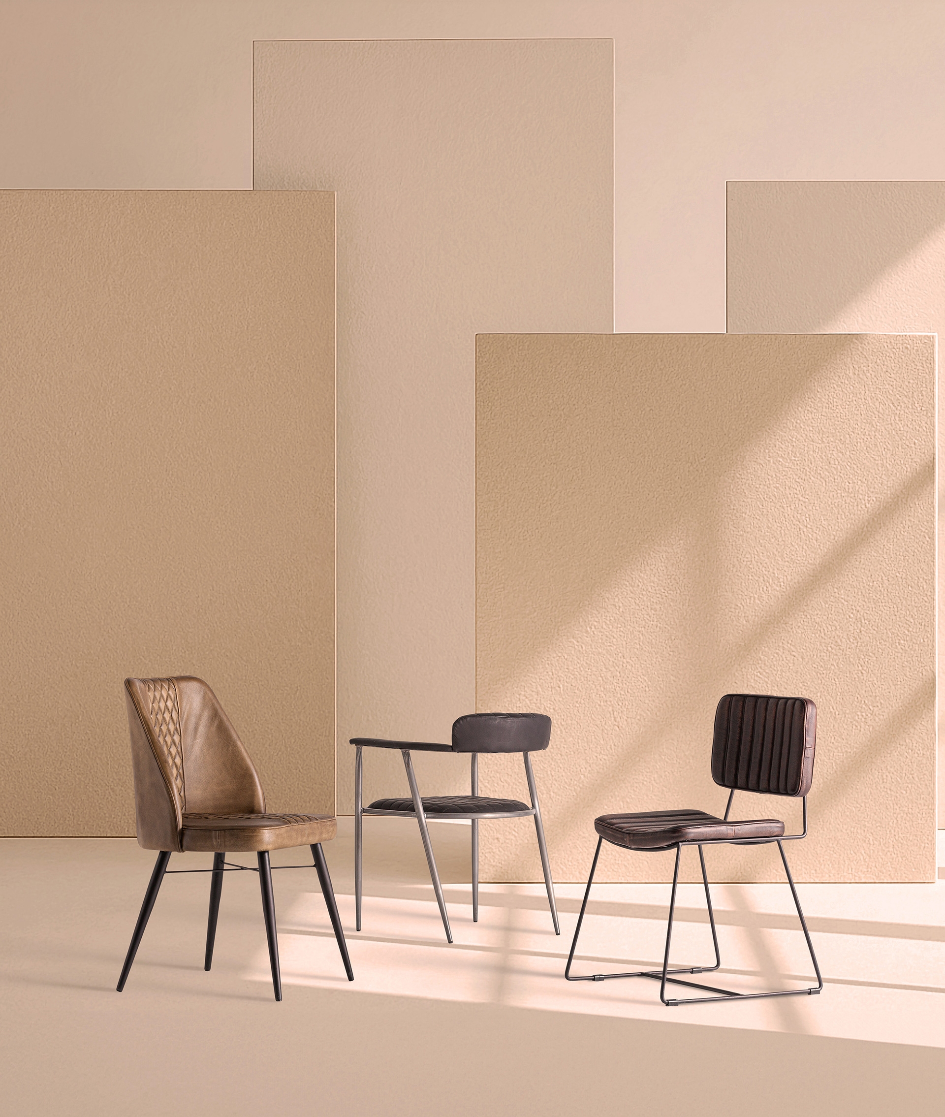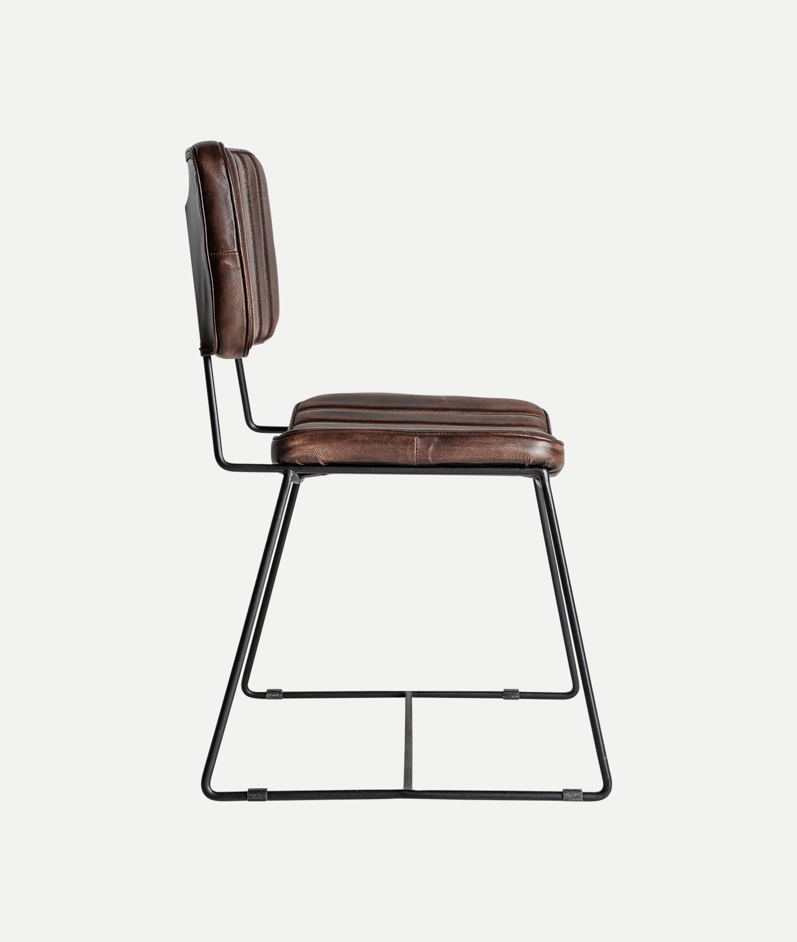 Silla Issert de estilo vintage, fabricado en piel en color marrón, combinado con hierro en color negro.