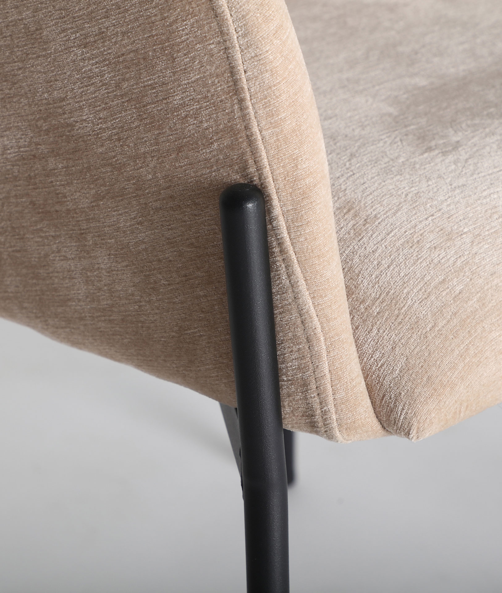 Silla rectangular cresse de estilo vintage, fabricado en poliéster en color marrón claro, combinado con hierro en color negro y sin.