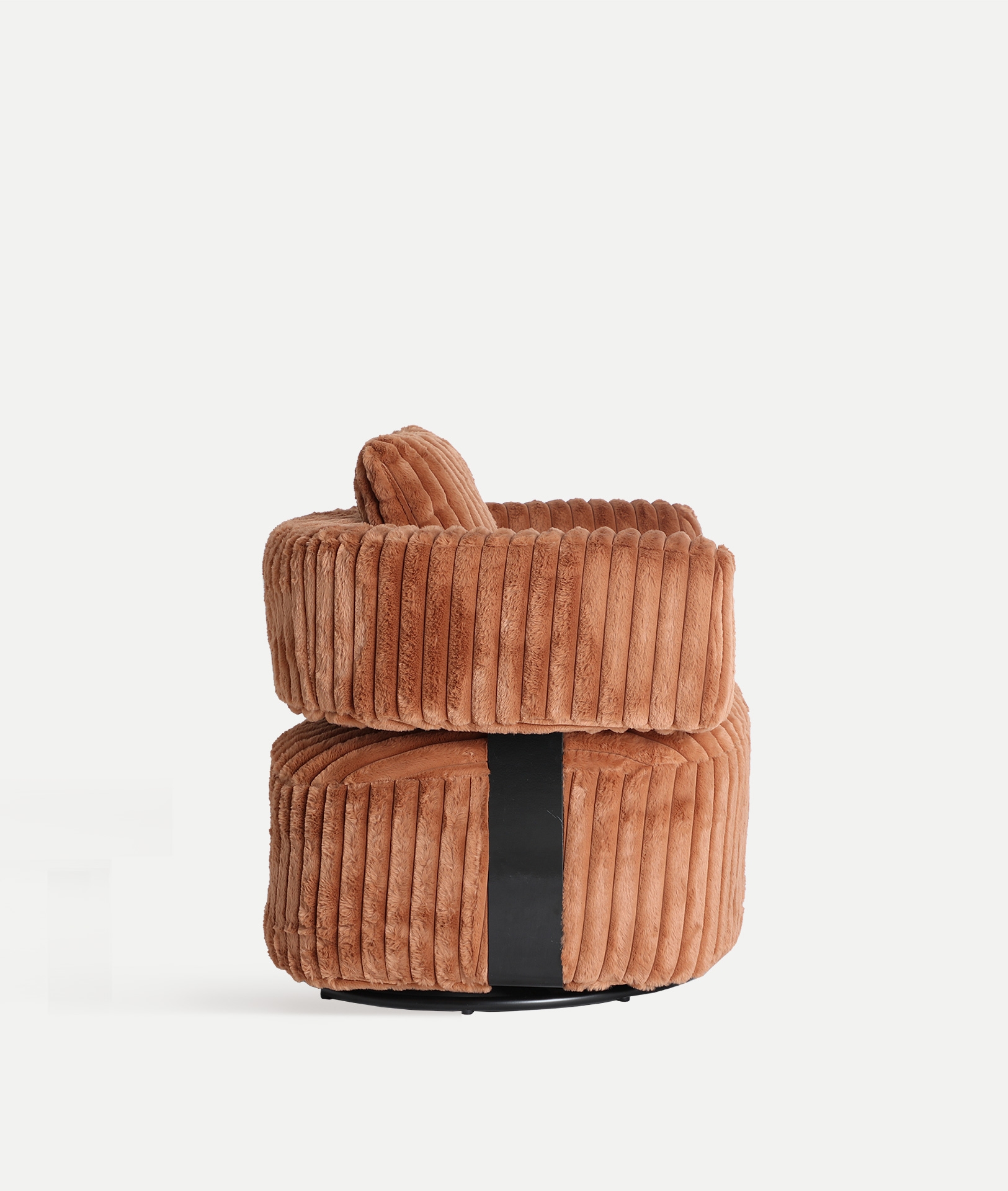Sillón giratorio Marnay de estilo contemporáneo, fabricado en poliéster en color terracota, combinado con hierro en color negro y espuma.