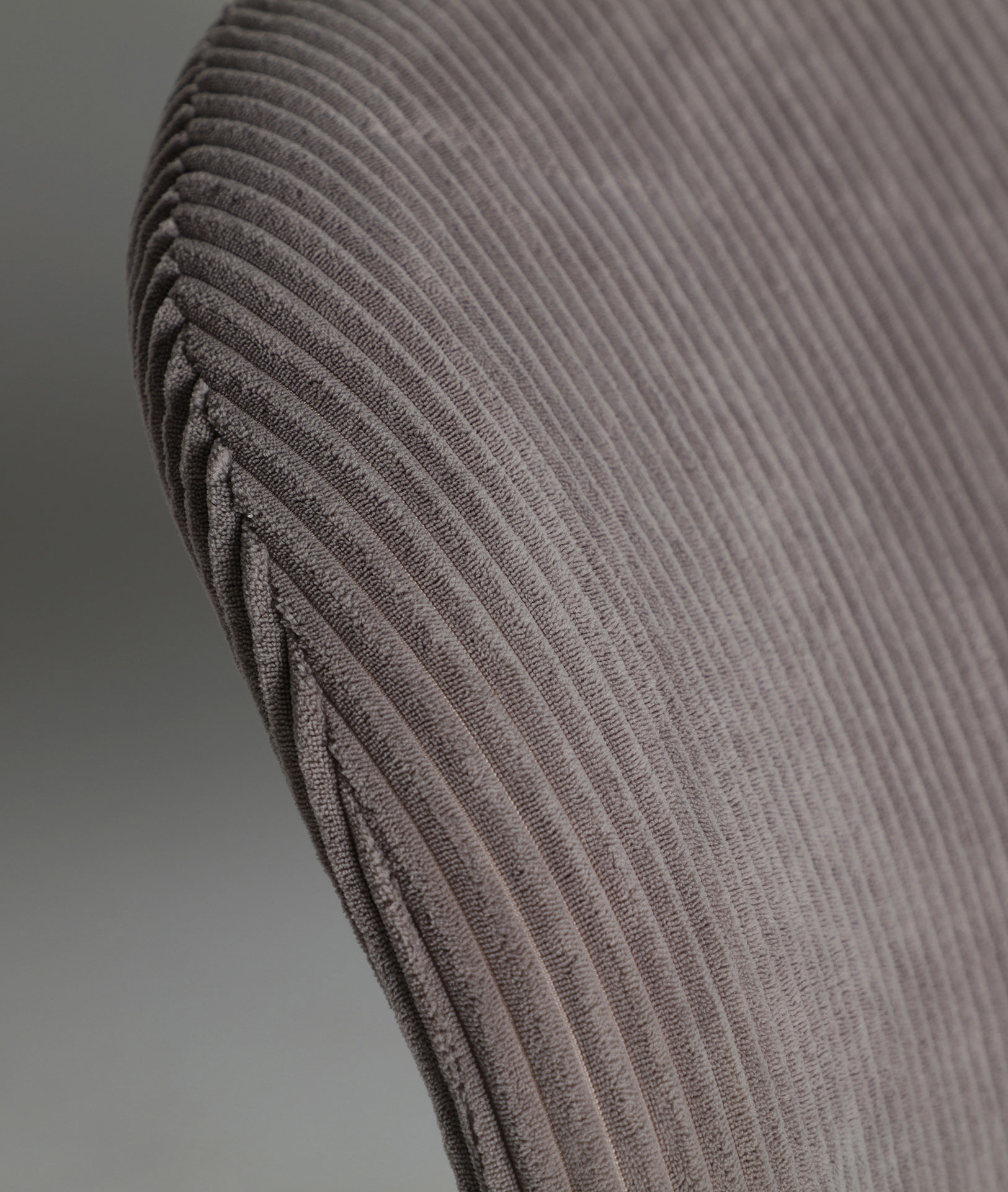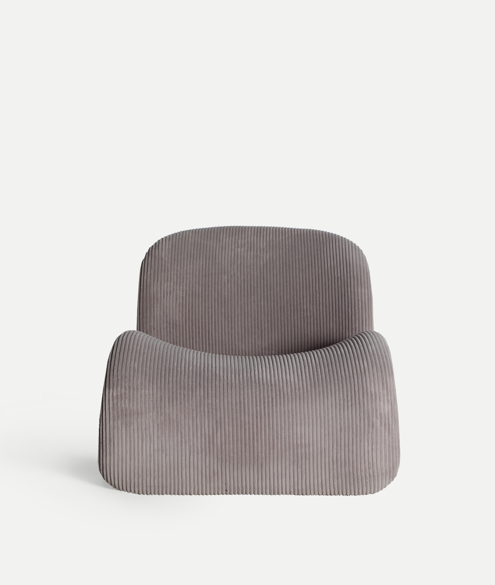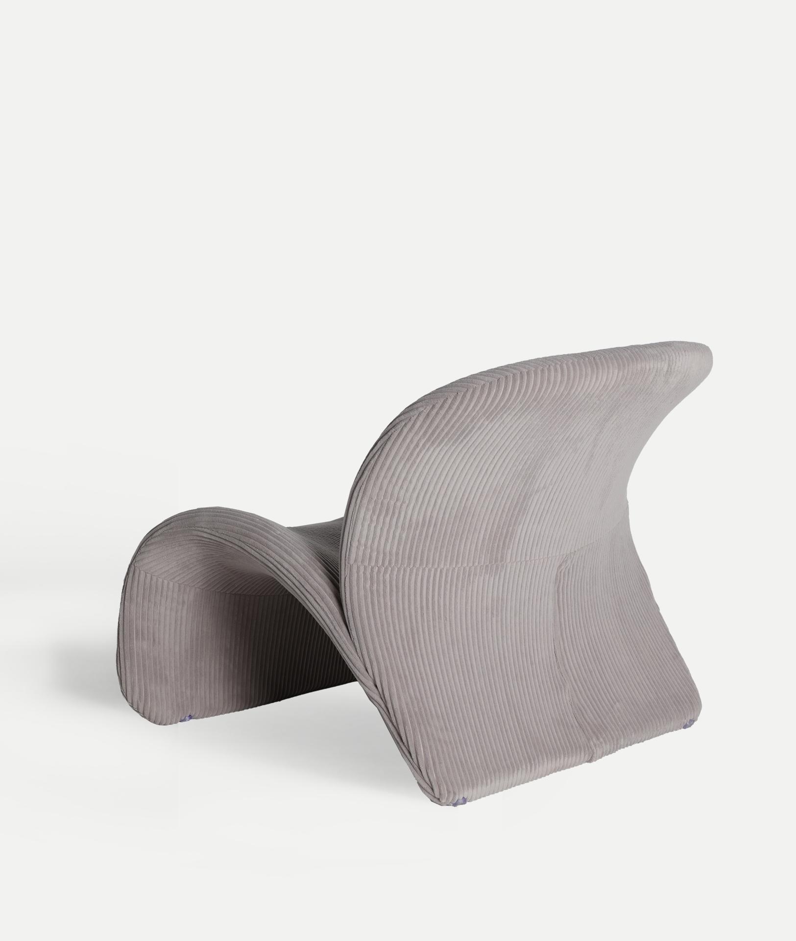 Sillón Vianne de estilo art deco, fabricado en poliéster en color gris, combinado con madera de pino y espuma.