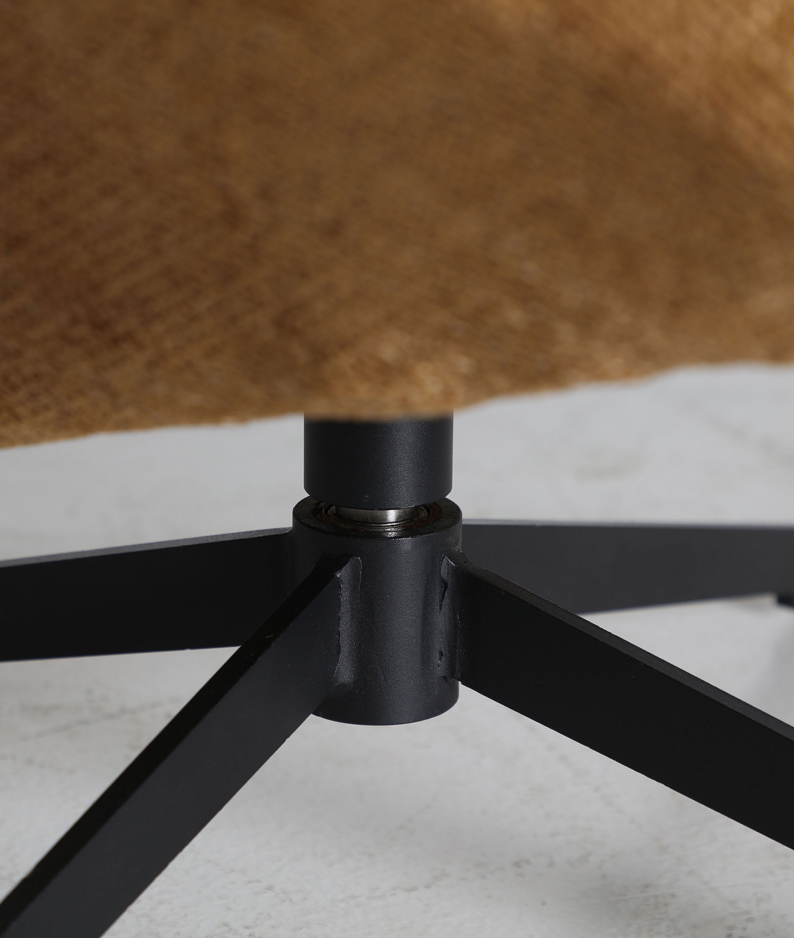 Sillón giratorio rectangular privas de estilo contemporáneo, fabricado en poliéster en color ocre, combinado con hierro en color negro y espuma. Producto desmontable.
