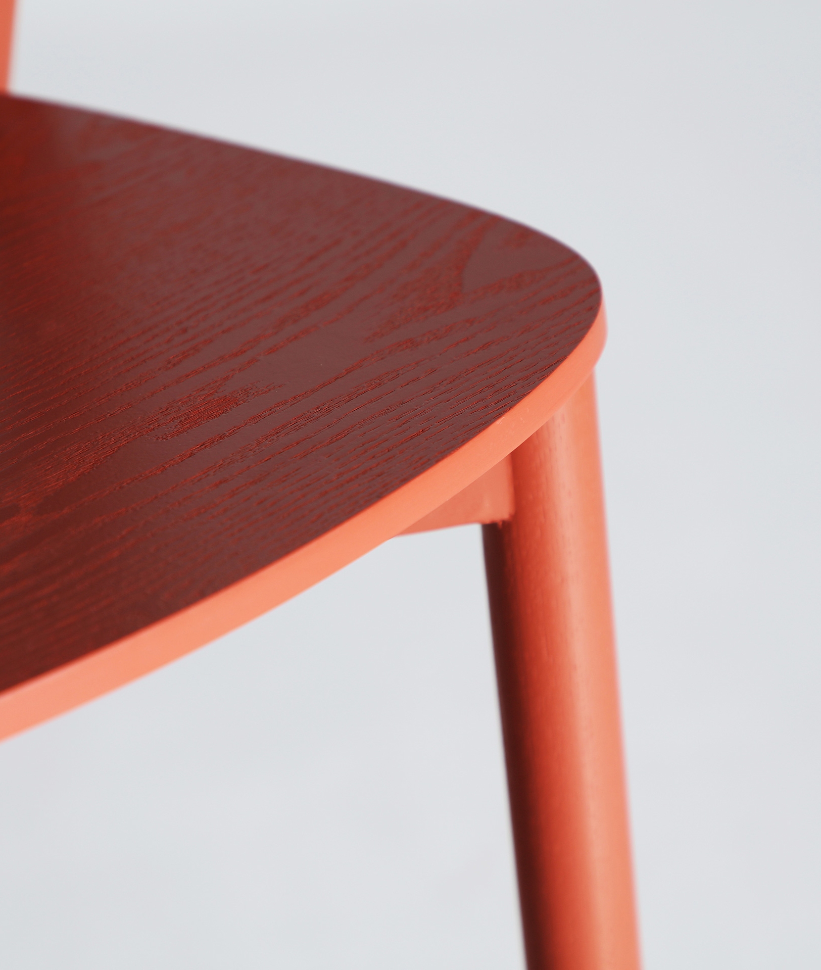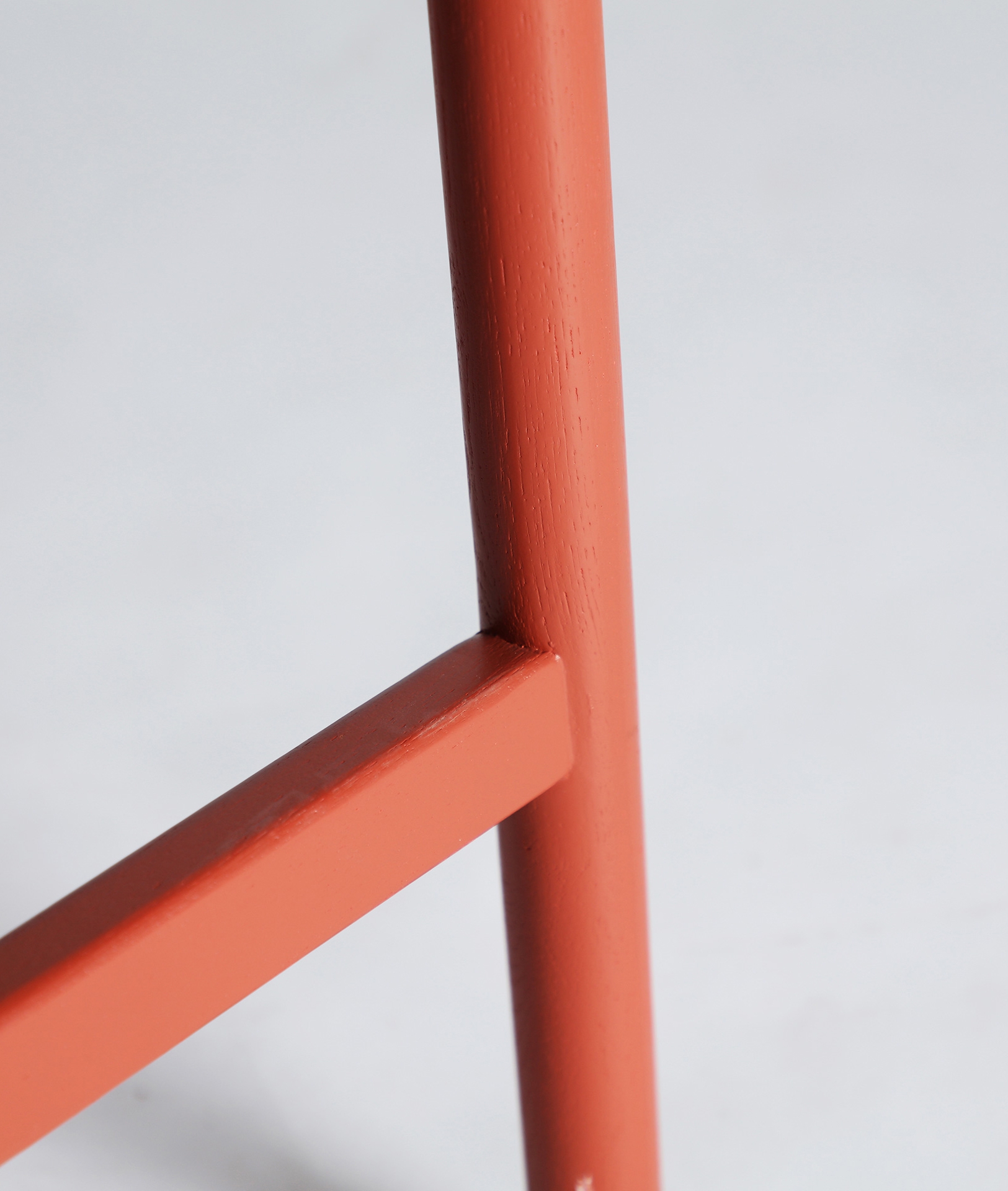 Taburete Vreden de estilo vintage, fabricado en madera de fresno en color rojo.