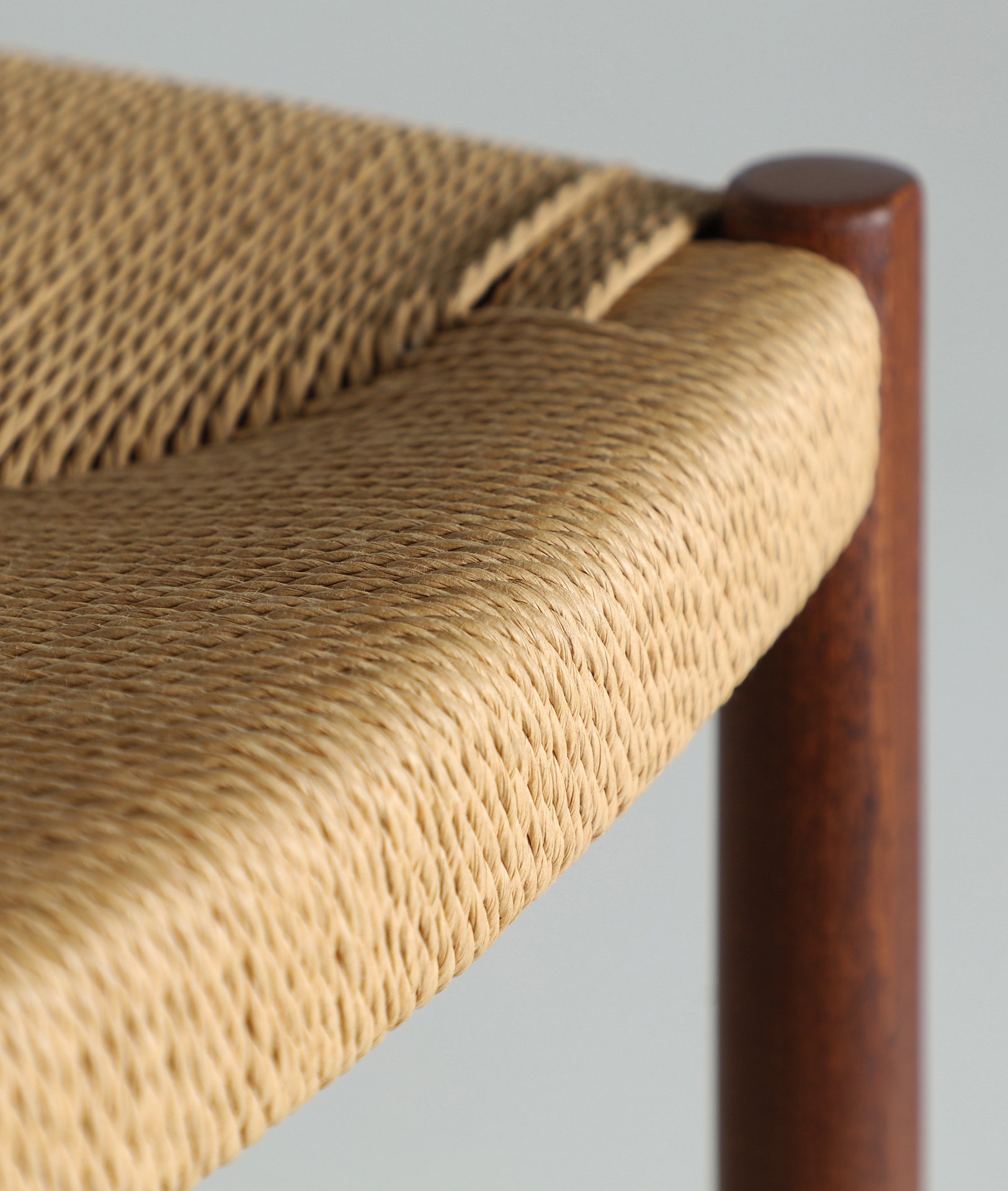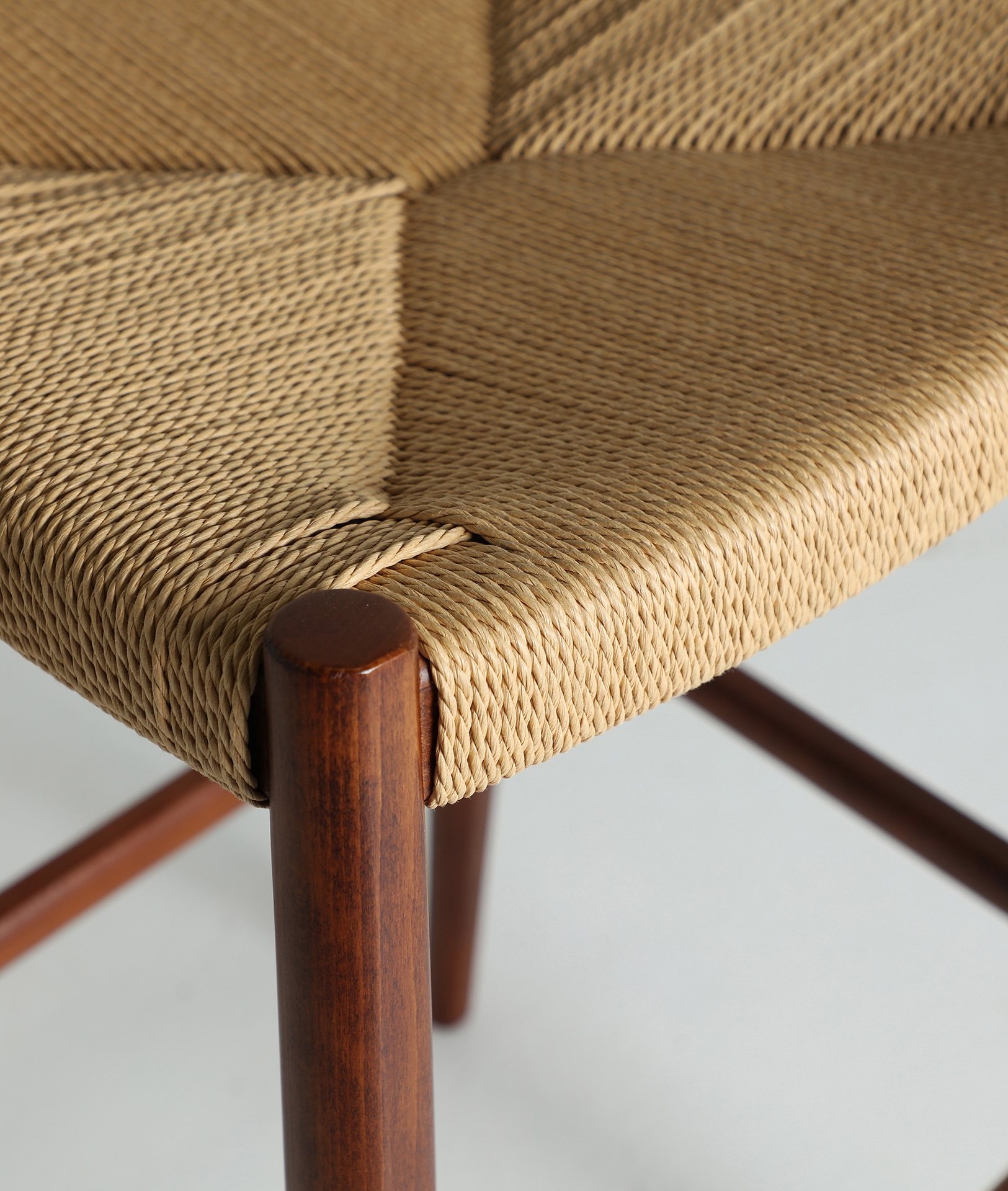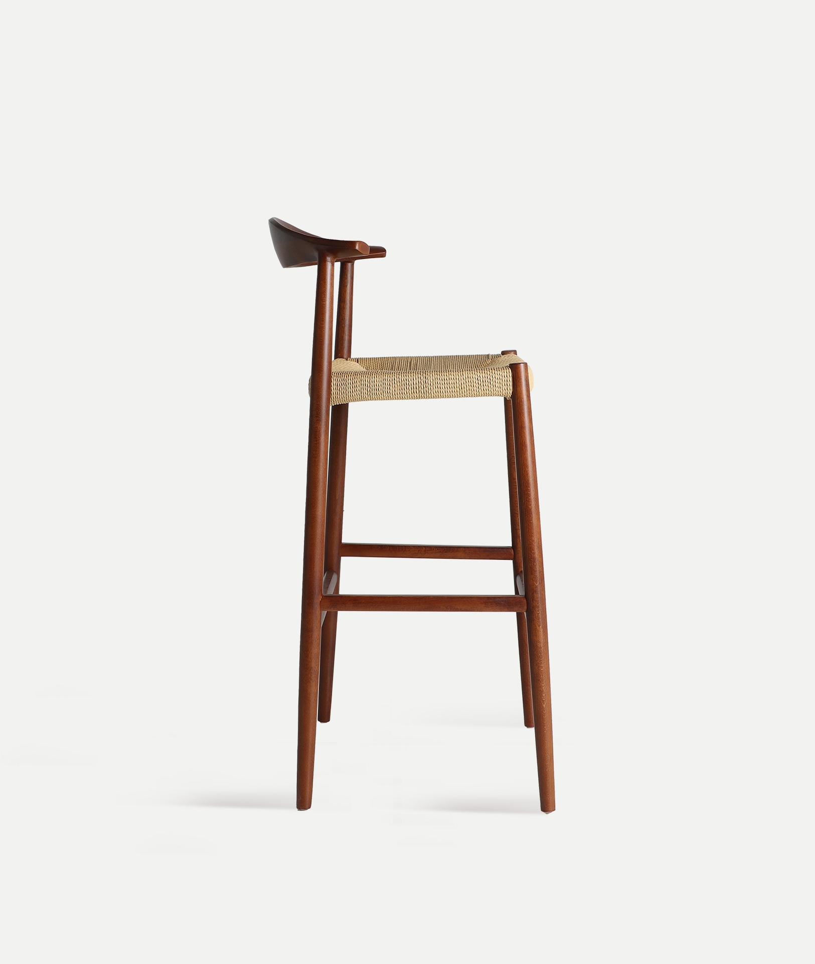 Taburete Zelhem de estilo nórdico, fabricado en madera de haya en color marrón, combinado con cuerda en color beige.