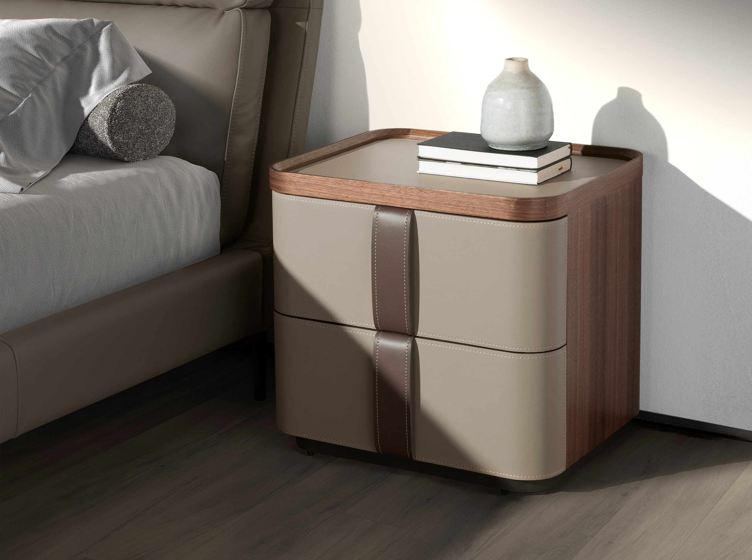 – Su elegante tapizado en piel color visón y los tiradores en piel color marrón chocolate crean una estética moderna y sofisticada. Además de su atractivo visual, ofrece una organización impecable gracias a sus cajones con compartimentos especialmente diseñados para joyas, relojes y pequeños accesorios, asegurando que cada detalle tenga su lugar y cuidado.