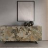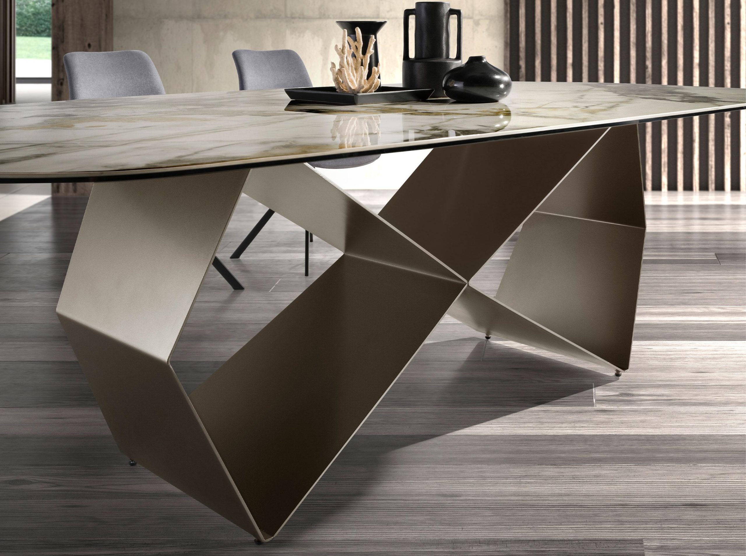 Mesa comedor rectangular mármol porcelánico y acero color champagne modelo 1140 Angel Cerdá