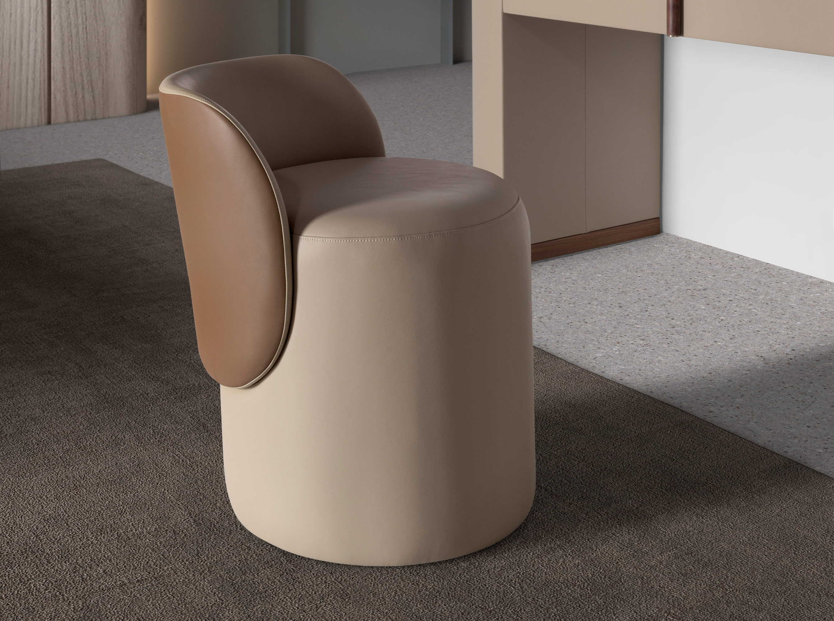 – Su superficie tapizada en polipiel de alta calidad combina elegancia y durabilidad, aportando un tacto suave y un estilo refinado ideal para espacios de trabajo con carácter contemporáneo.