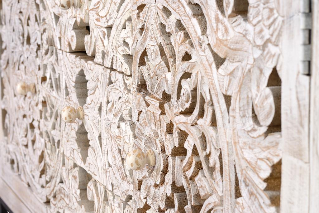 - CALIDAD Hecho de madera maciza de mango, el mueble de cajones es estable, duradero y bonito. La madera dura de mango sin tratar muestra vetas de madera natural, por lo que cada uno de nuestros aparadores es único y ligeramente diferente del resto.