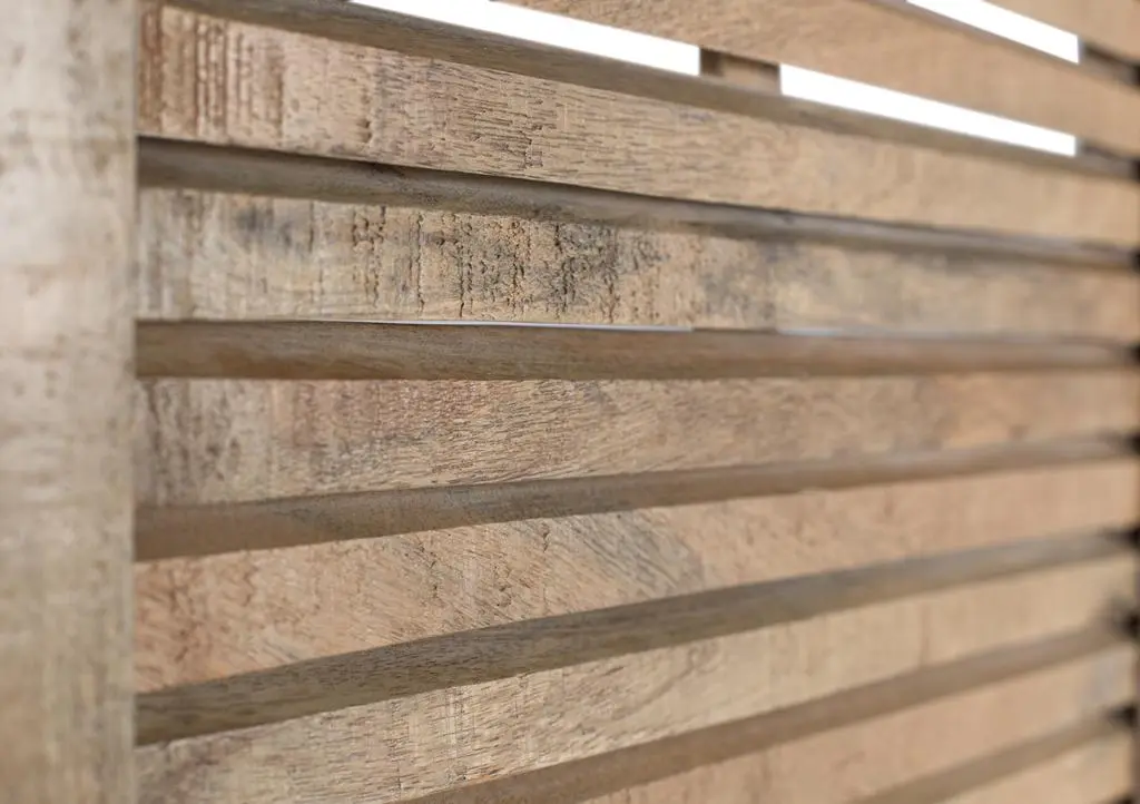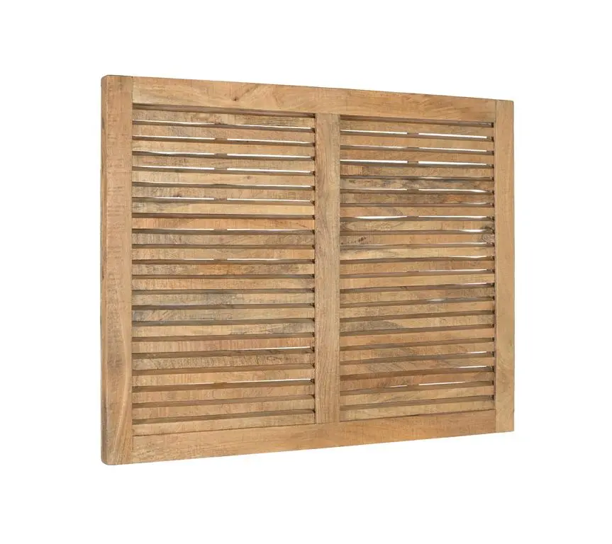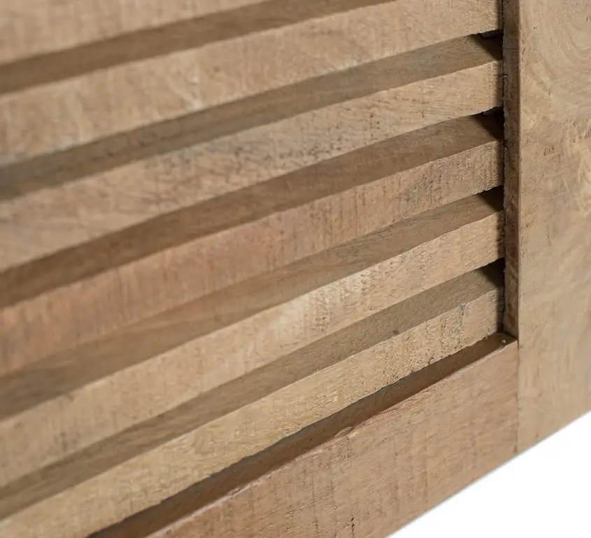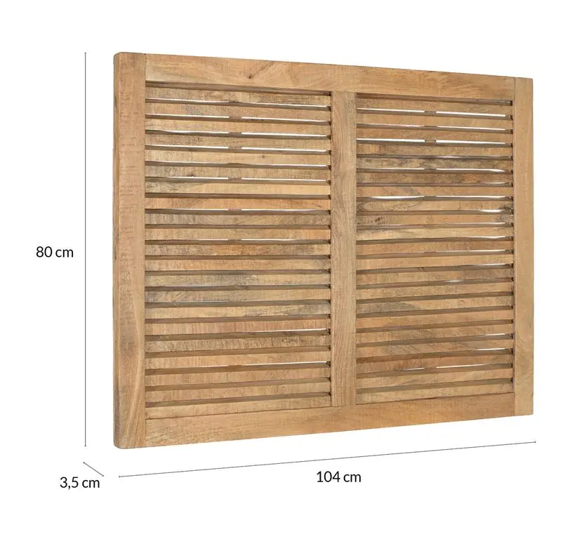 Cabecero fabricado en madera de mango en color natural. Diseño de lamas horizontales. Aporta calidez y estilo al dormitorio. Producto montado, listo para colocar.