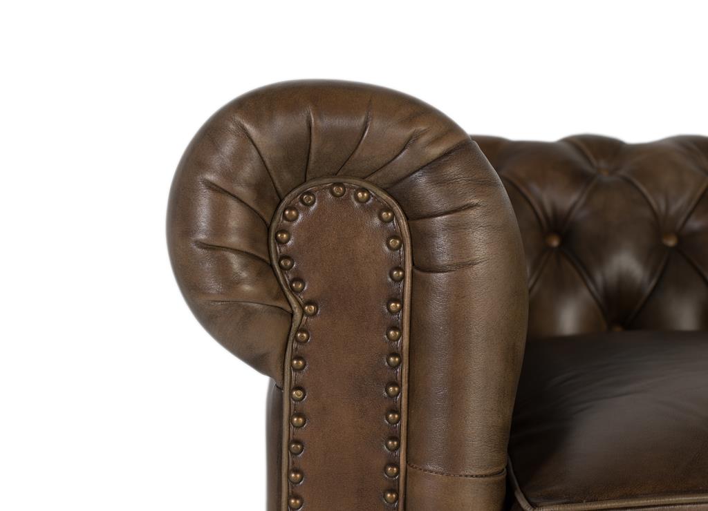 Un sillón Chester de una plaza tapizado en piel de color oscuro ofrece un diseño elegante y atemporal. Este acabado capitoné no solo aporta una apariencia sofisticada, sino que también proporciona una textura acolchada y lujosa al tacto. El sofá, con sus líneas estructuradas y brazos ligeramente elevados, combina confort y estilo en una pieza que sirve como un punto focal distintivo en cualquier espacio.