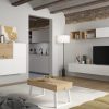 Composición de salón Kronos modelo 601 formada por un módulo de Tv, Vitrina alta, Bajo bar y estante 280 cm. Una opción de personalización de salón que incorpora un estilo moderno a tu hogar. La composición está preparada para colgar y está fabricada en melamina de primera calidad.