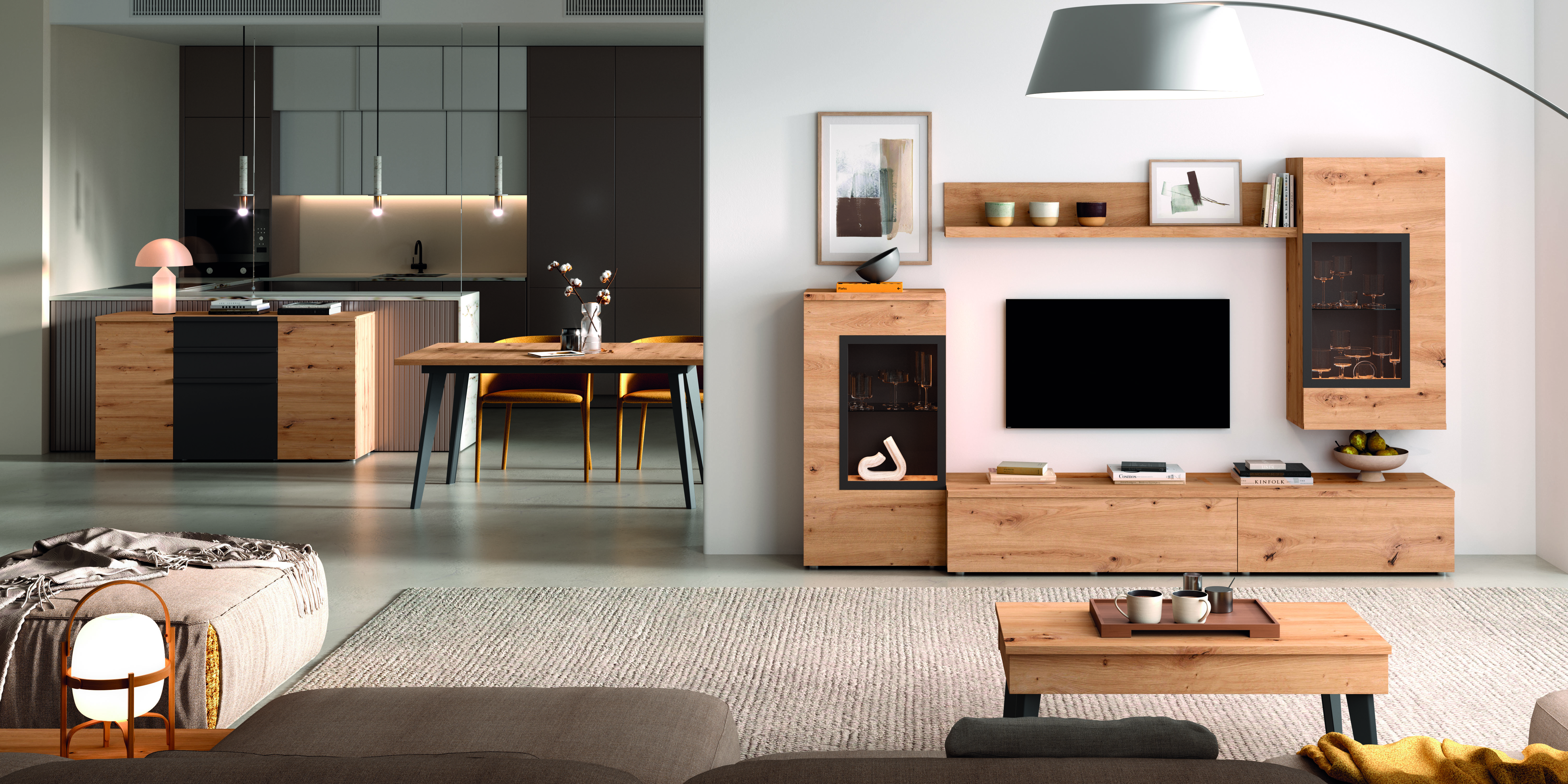 Diseño: Composición de salón Neo 270 cm modelo 318 Color Ébano y Artisan, El Salón Neo es un mueble que fusiona elegancia y confort, ideal para espacios modernos. Con un diseño moderno y sofisticado, ofrece un ambiente acogedor y versátil que se adapta a tus necesidades.