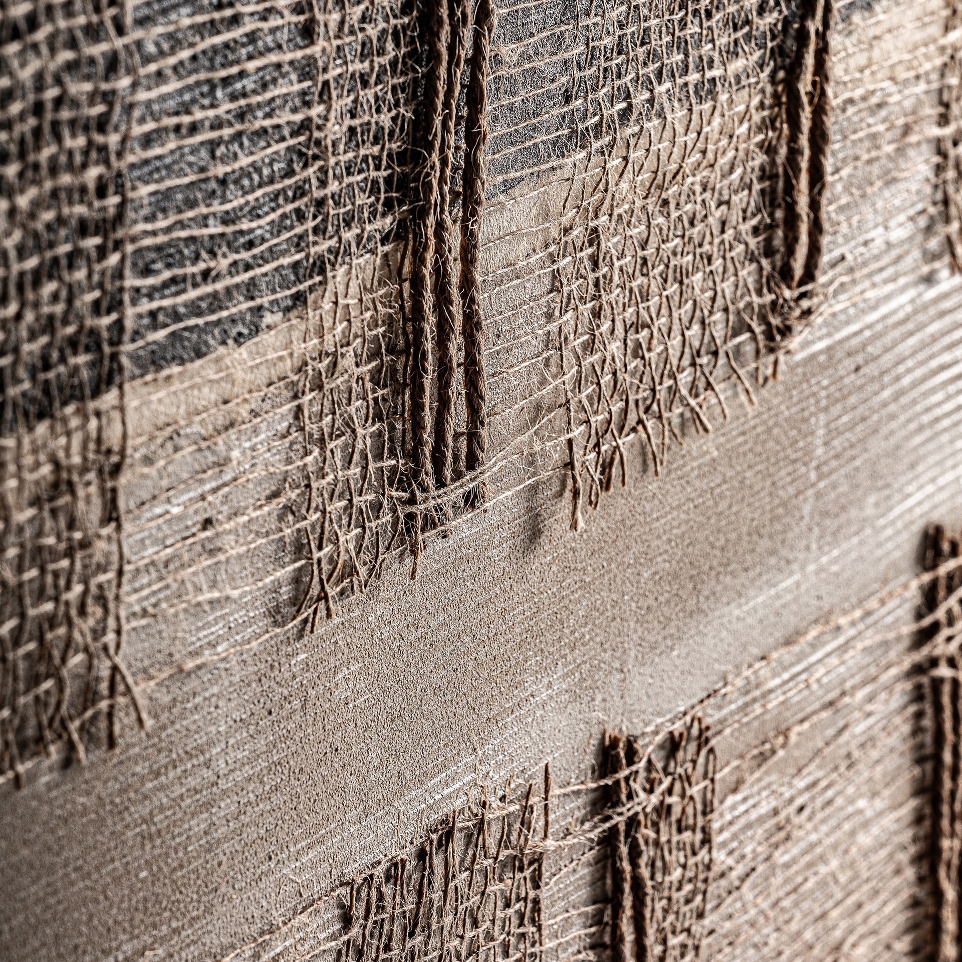 Lienzo aslan de estilo boho fabricado en lienzo en color tonos en marrón con acabado artesanal combinado con madera de pino en color marrón.