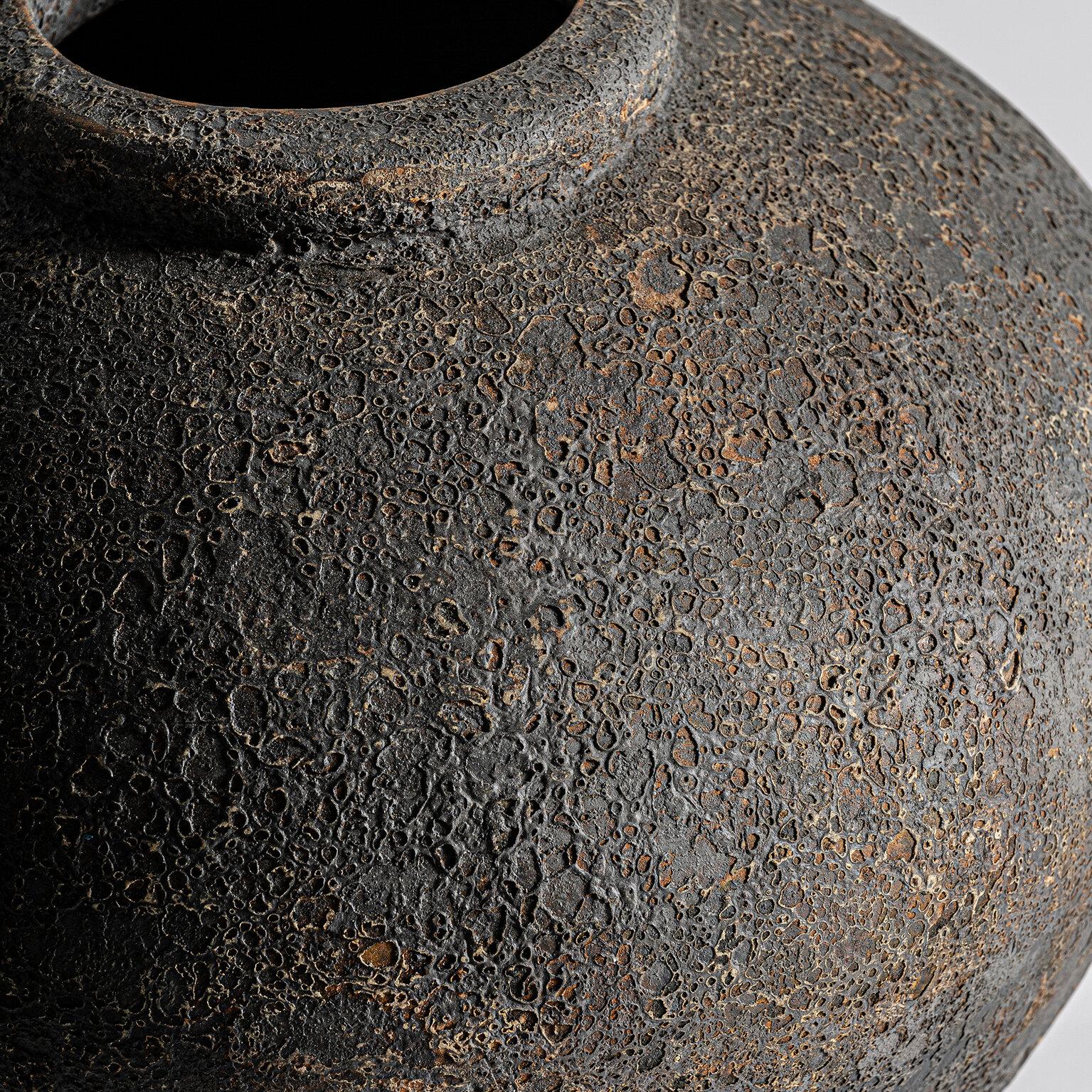 Jarrón igor de estilo contemporáneo fabricado en terracota en color tonos oscuros.