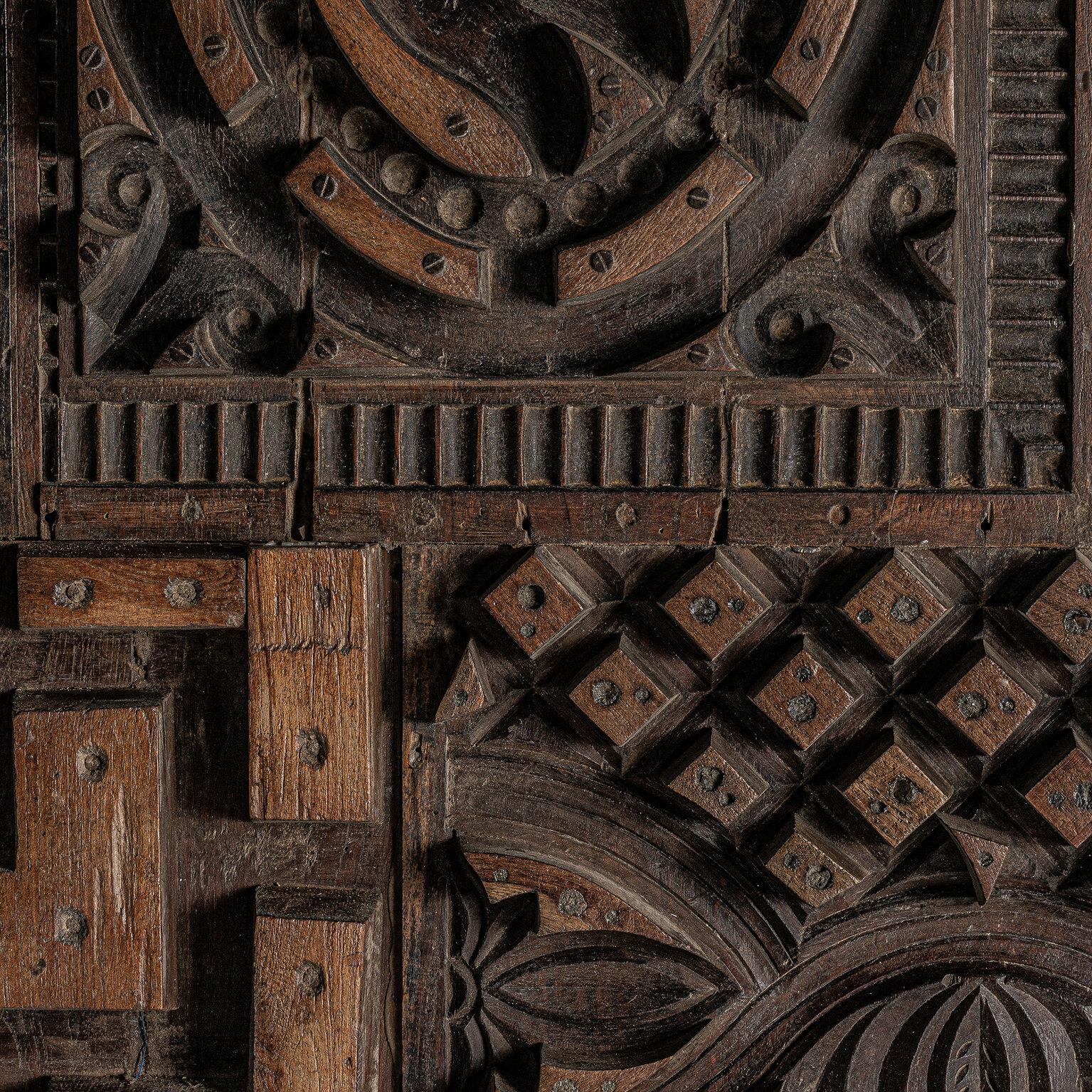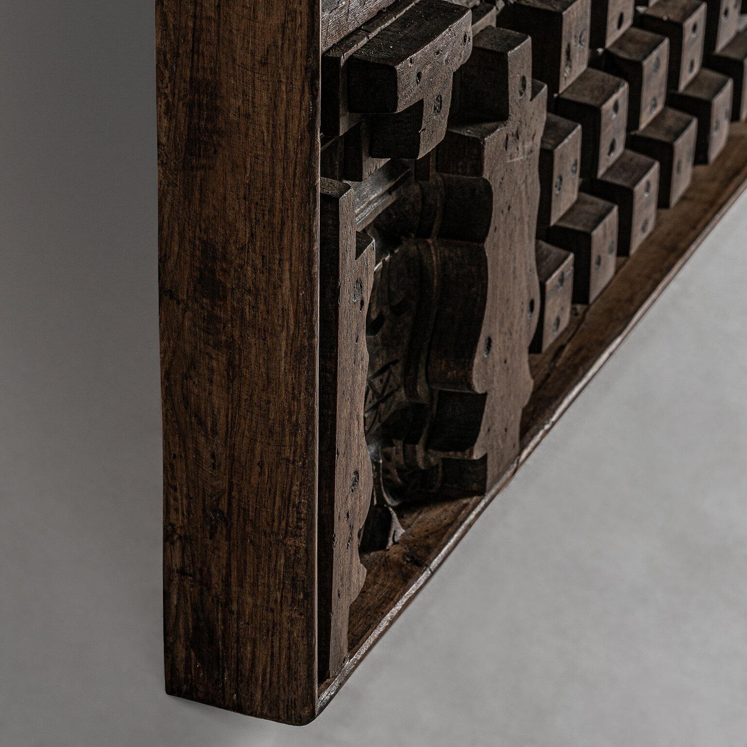 Panel decorativo Kissey de estilo étnico fabricado en madera de mango en color marrón con acabado tallado.