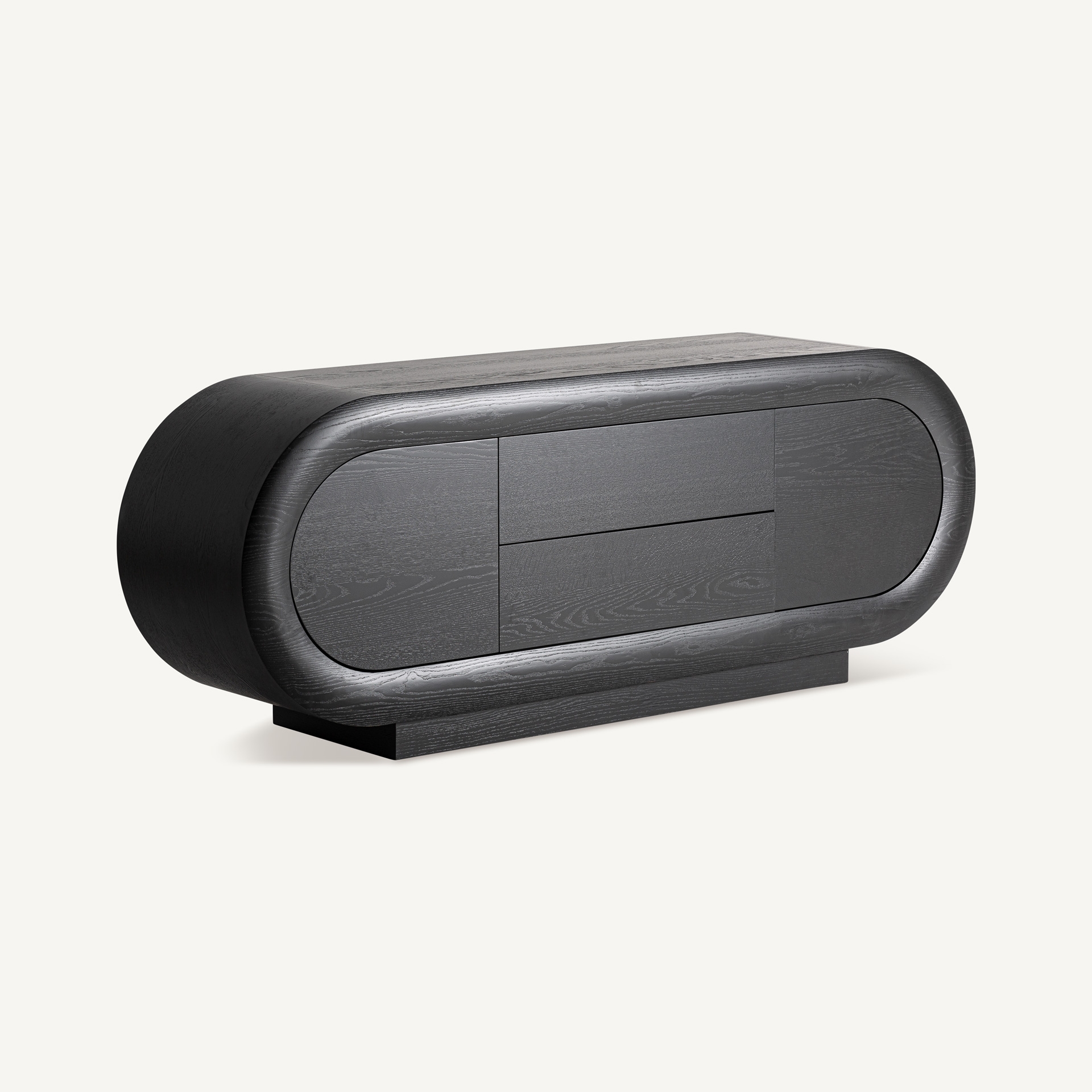 Aparador Chamonix de estilo art deco, fabricado en madera roble en color marrón en color negro.