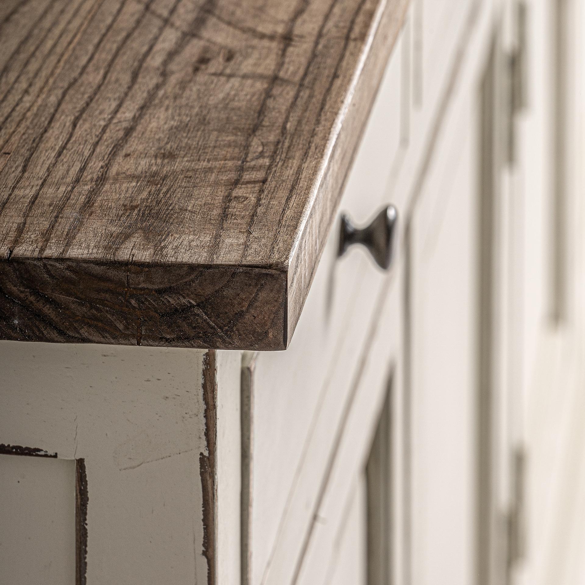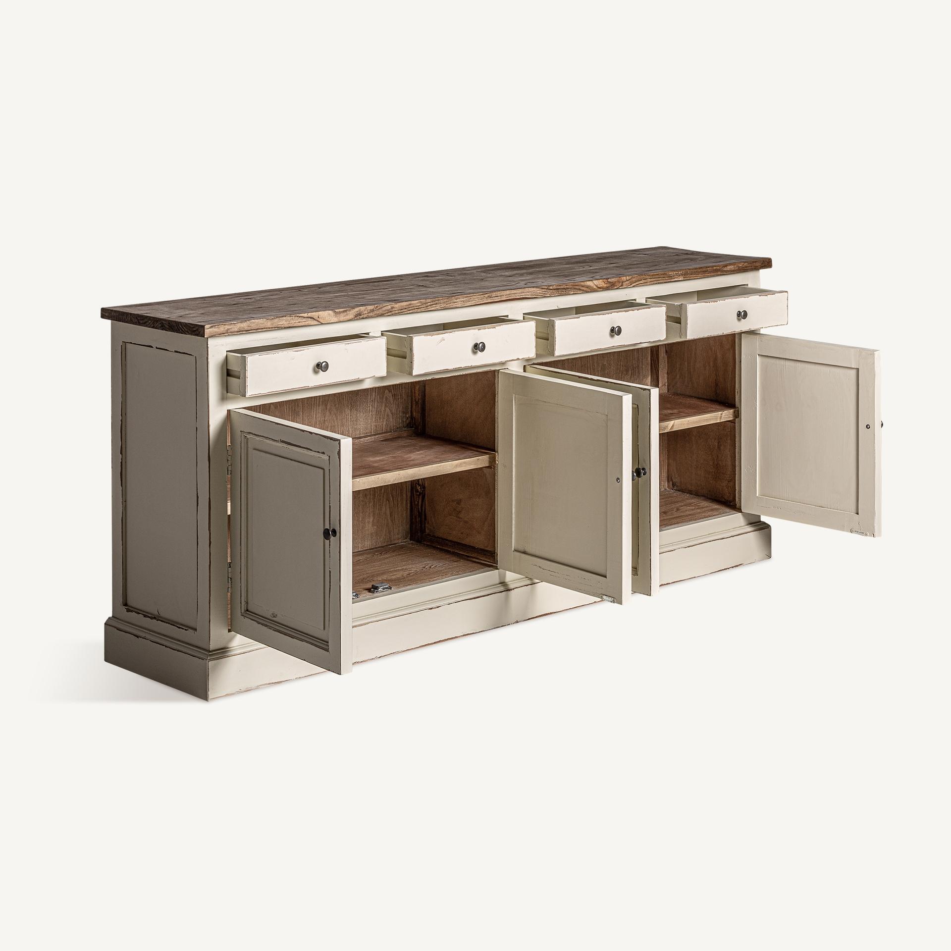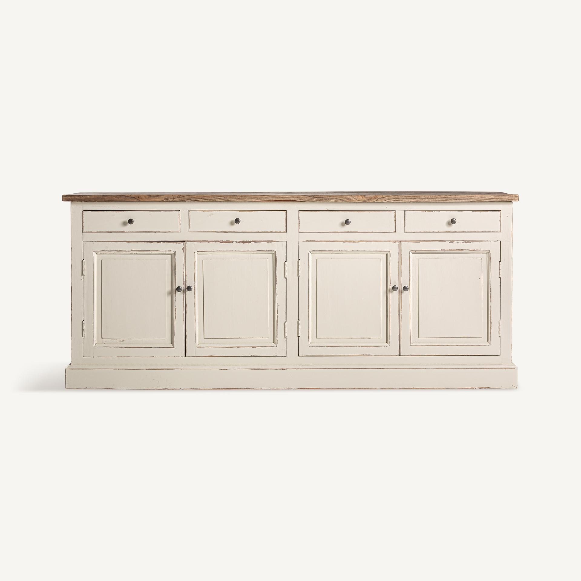 El Buffet Pivka de VICAL home refleja la esencia de lo clásico y auténtico. Fabricado en madera de olmo, su acabado en blanco roto armoniza con cualquier estilo de decoración. Ideal para salones y comedores que buscan funcionalidad y elegancia.